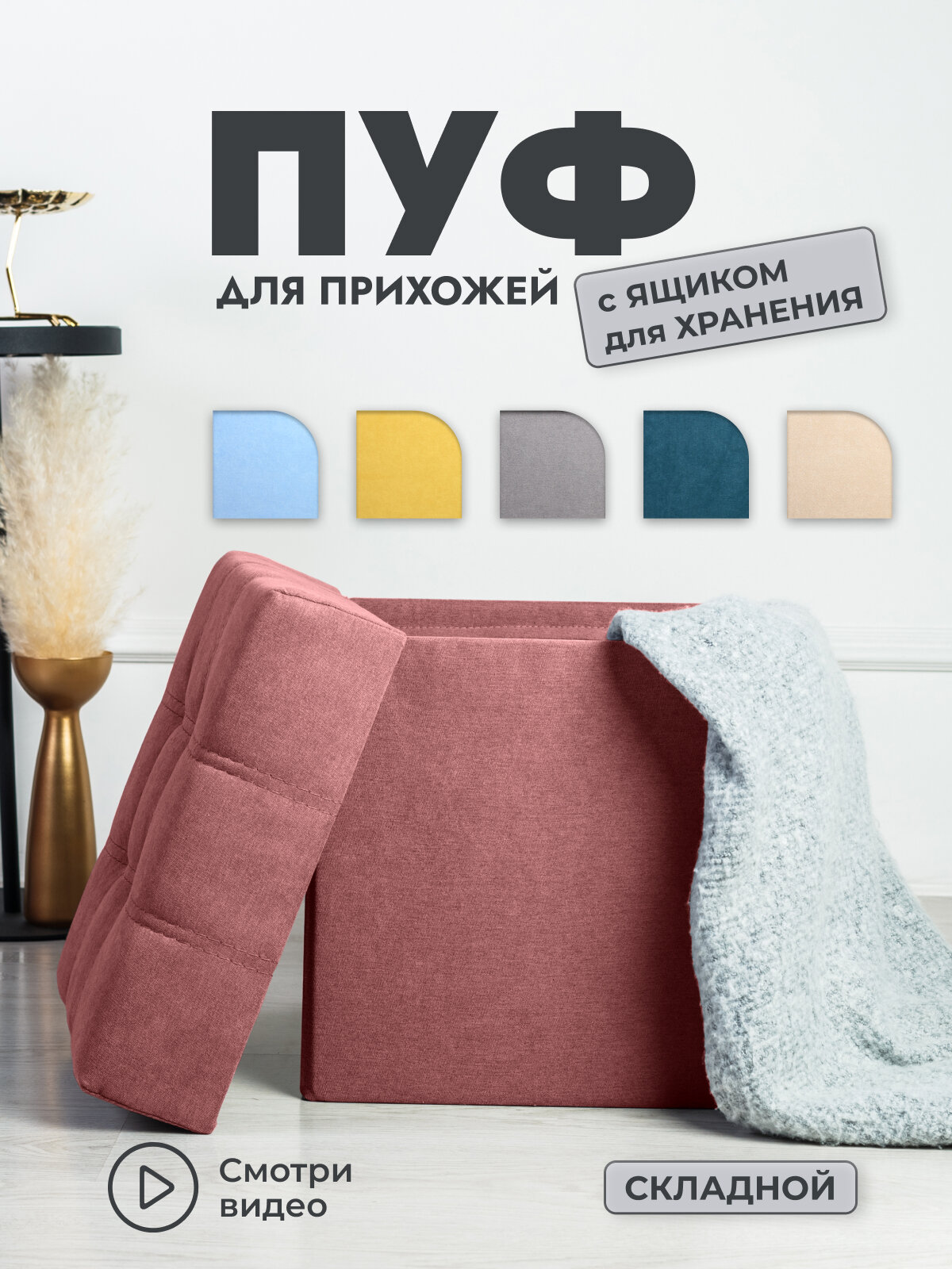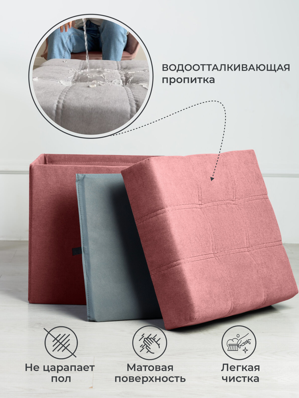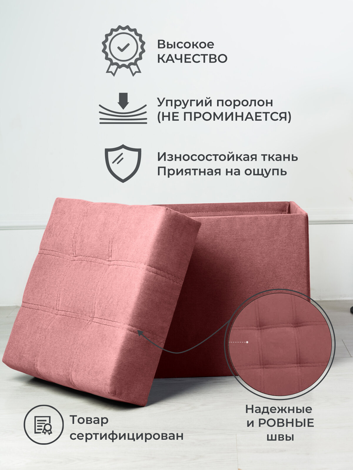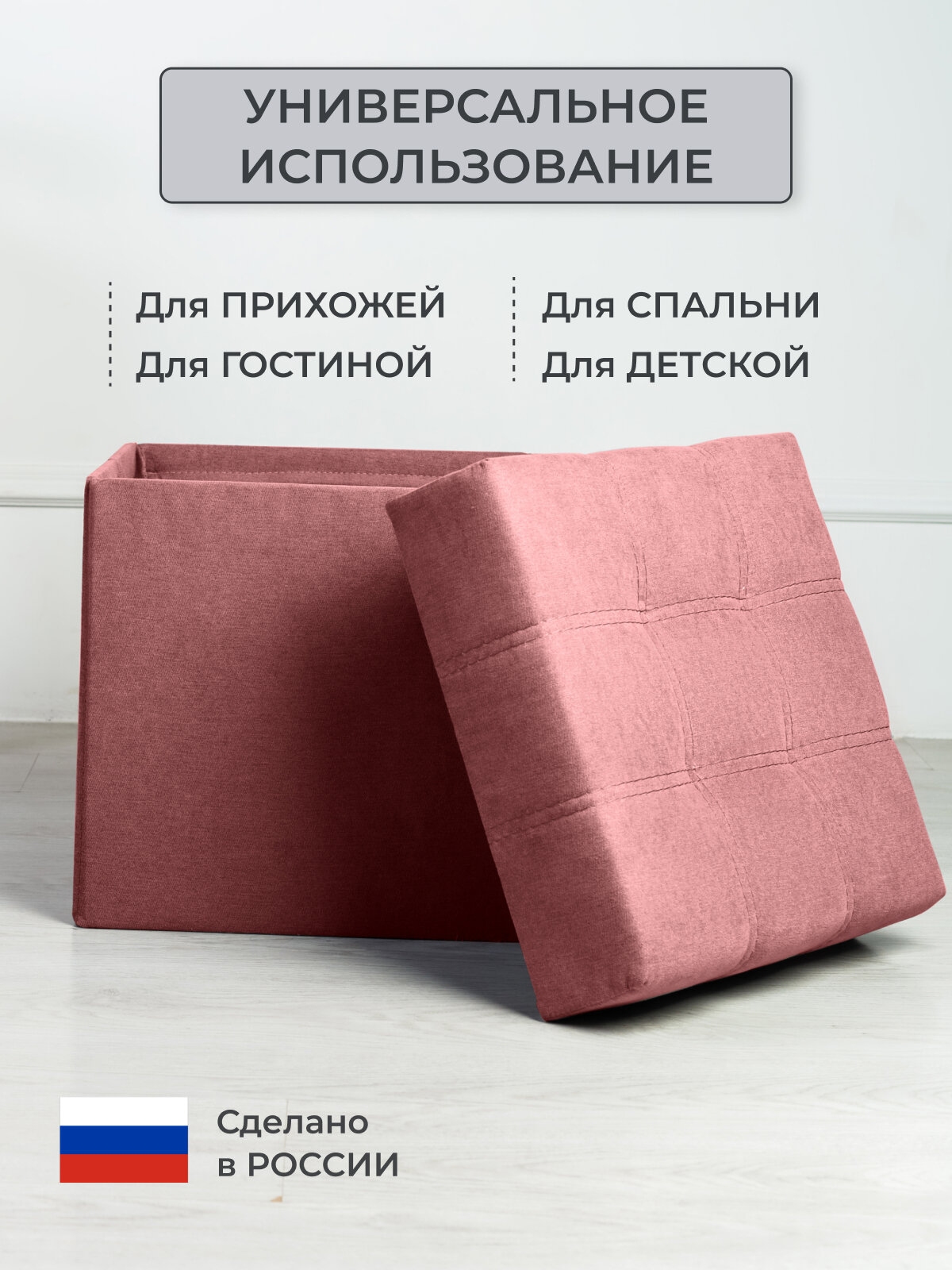 Пуфик для прихожей с ящиком для хранения от Div-one, 37*37*40 см, розовый интересное: