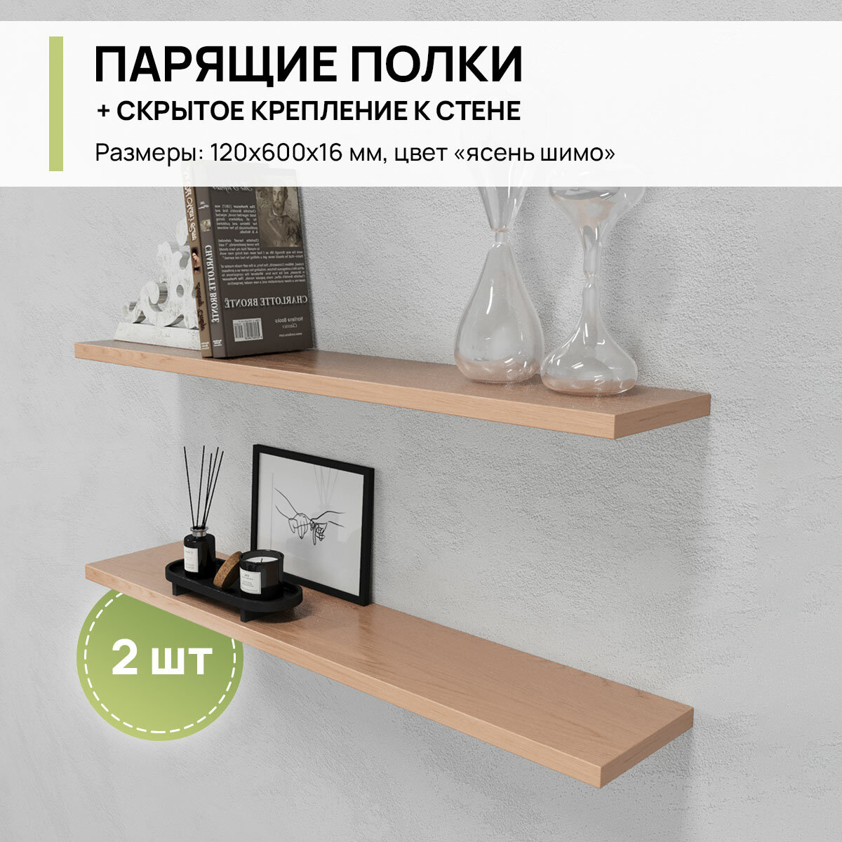 Полки парящие настенные комплект 2шт, 60х12х1.6 см