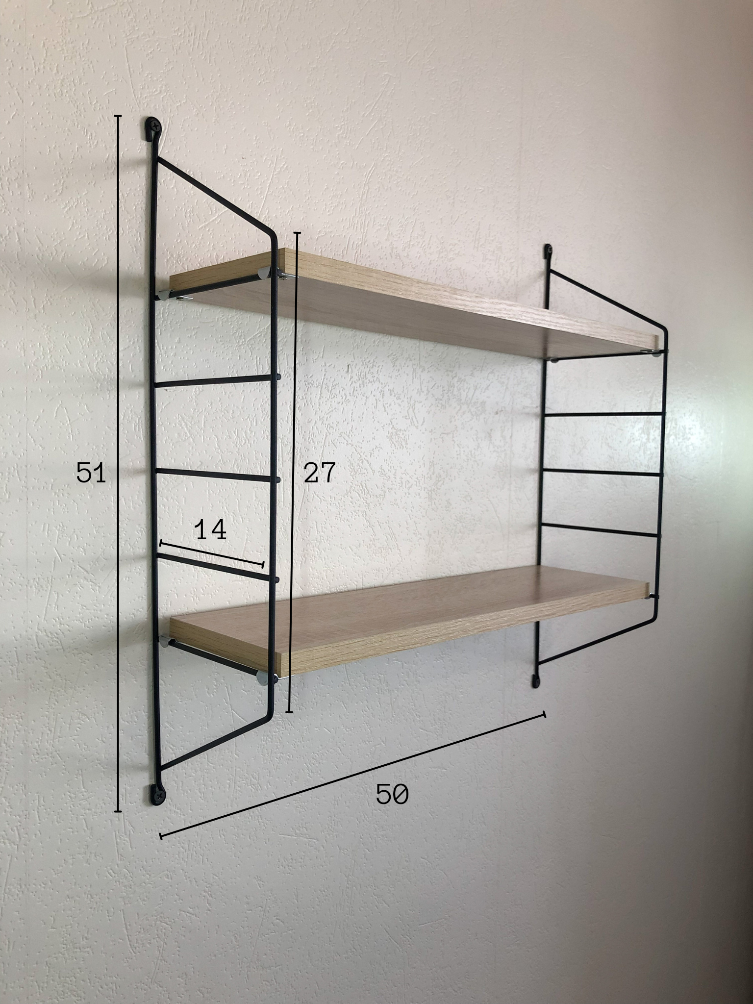 Купить Полка навесная настенная модель Грация №2 , 50см х 14см х 51см, цвет дуб сонома (светлый).