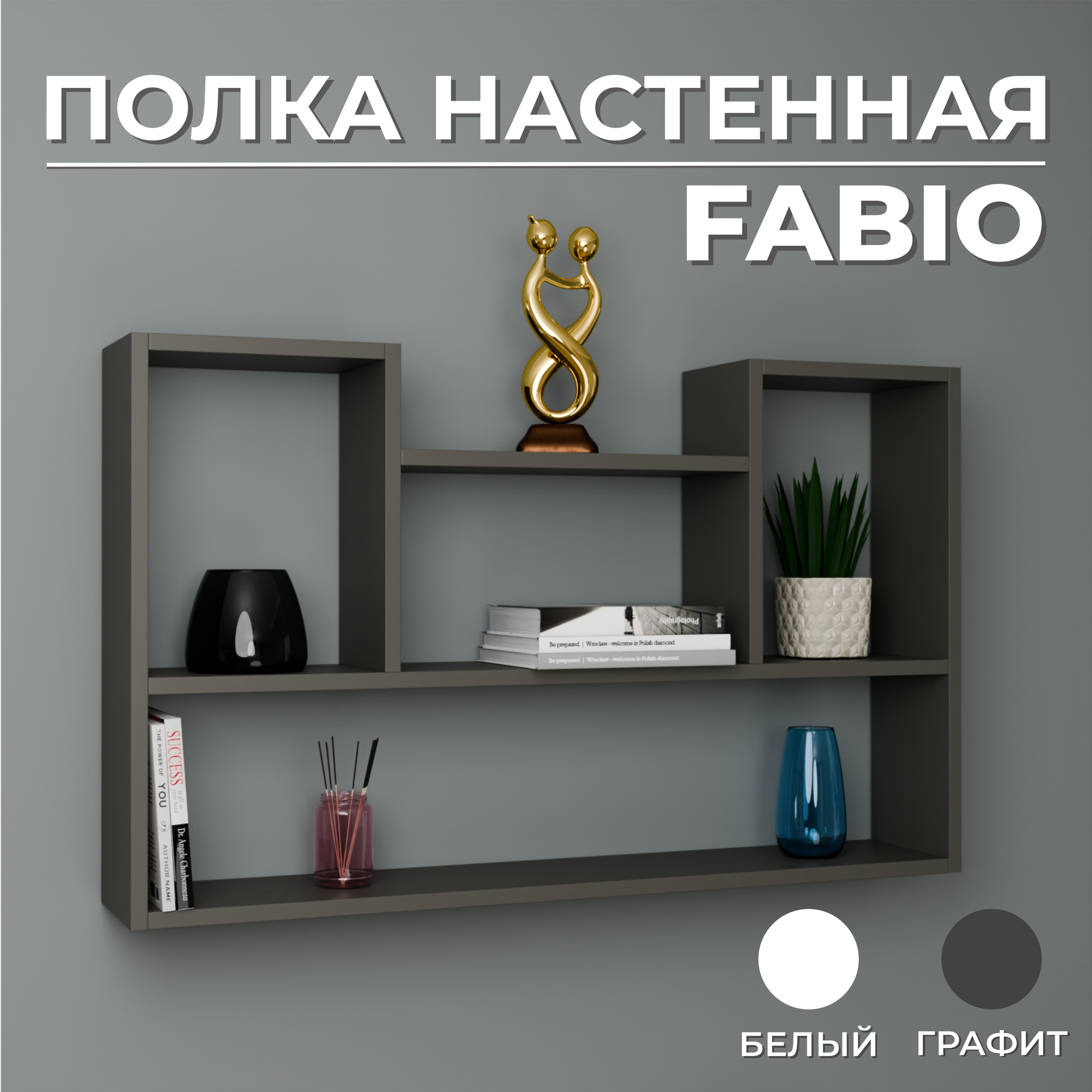 Полка настенная Графит FABIO / полка настенная / книжная / деревянная / для книг, цветов, игрушек 90 х 55 х 16 см интересное: