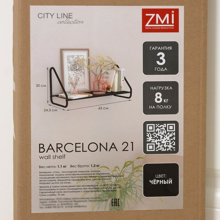 Полка настенная ЗМИ Барселона 21 ПНБ 21, черный интересное: