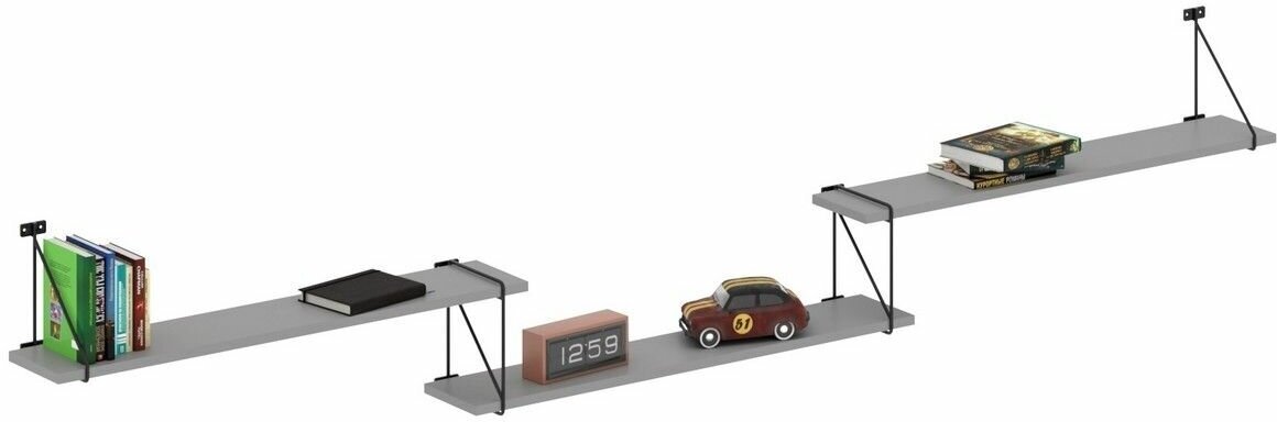 Навесная трехсекционная полка для книг COFFEE SH3-ROD/BAR, серый, 238х16х39