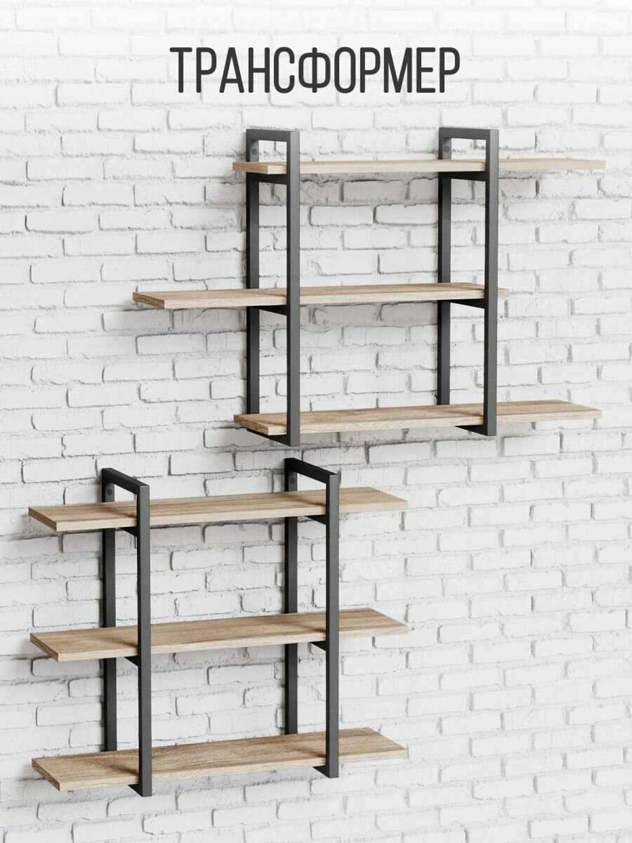 Купить Полка IamLoft для кухни и гостиной, металл и ЛДСП, 3-х ярусная, дуб эвок, нагрузка до 50 килограмм