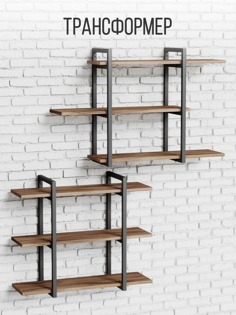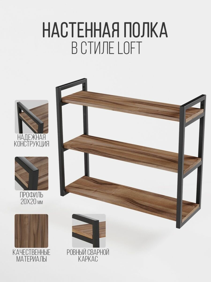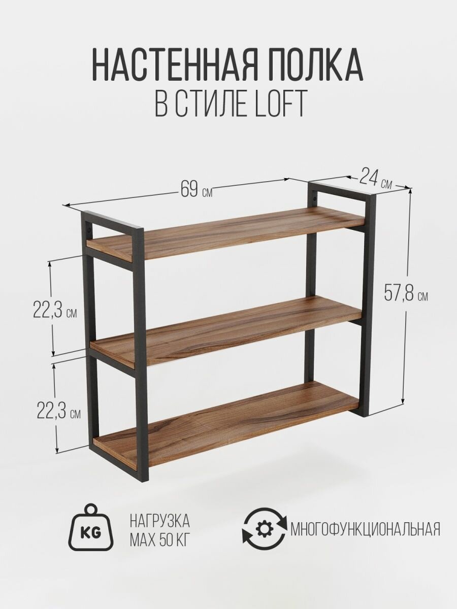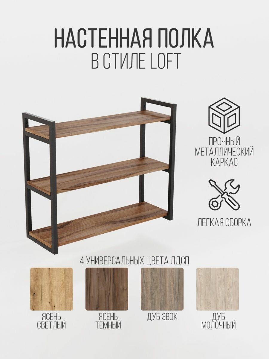 Купить Полка IamLoft для кухни и гостиной, металл и ЛДСП, 3-х ярусная, ясень темный, нагрузка до 50 килограмм