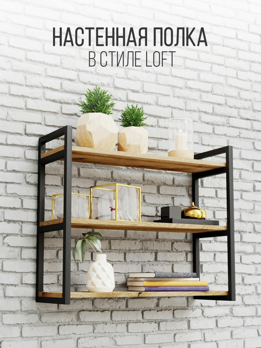 Полка IamLoft для кухни и гостиной, металл и ЛДСП, 3-х ярусная, дуб эвок, нагрузка до 50 килограмм