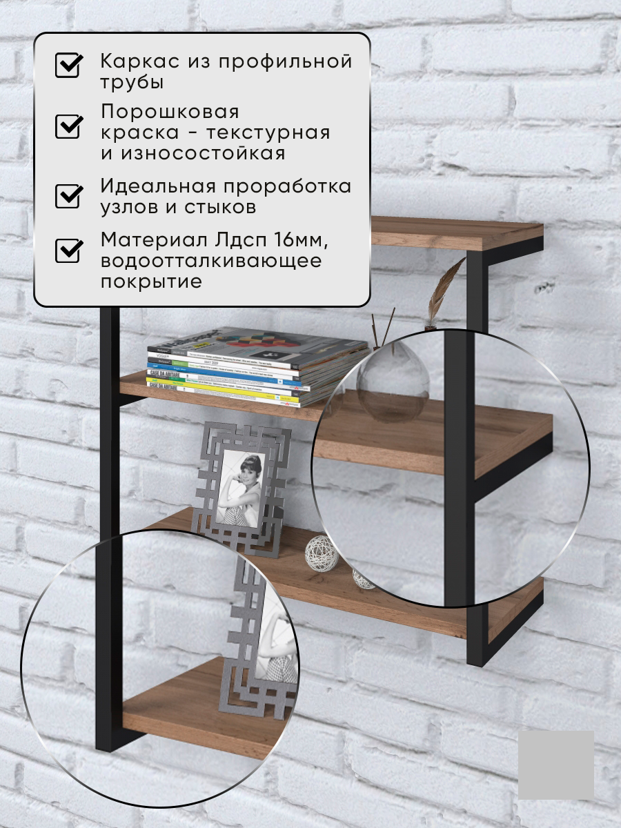 Полка настенная навесная лофт серая 4 яруса 40х22х80 см