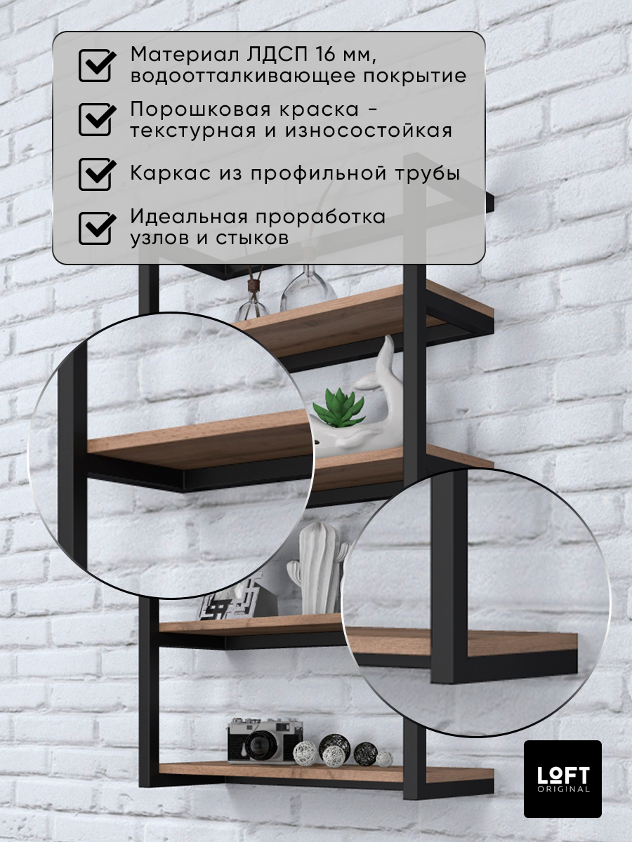 СохранитьПолка настенная навесная лофт коричневая 4 яруса 40х22х80 см интересное: