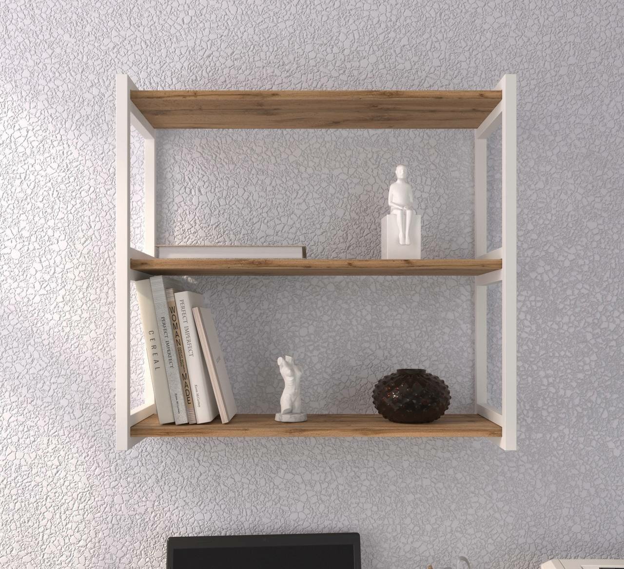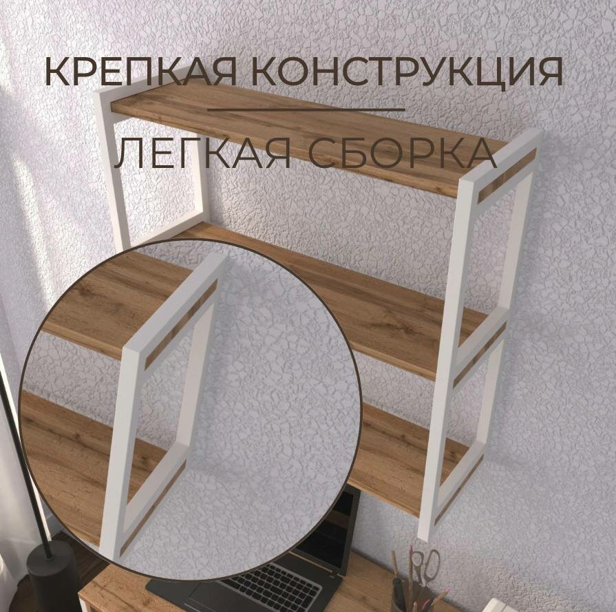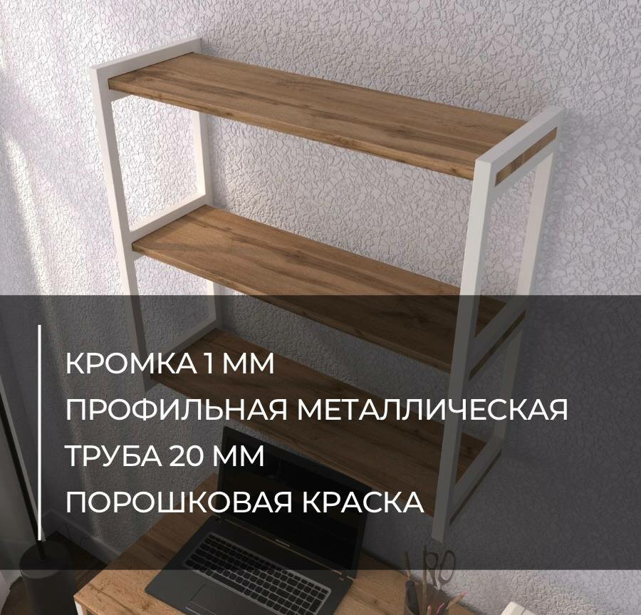 Полка стеллаж настенная лофт деревянная для кухни для книг для ванной белая