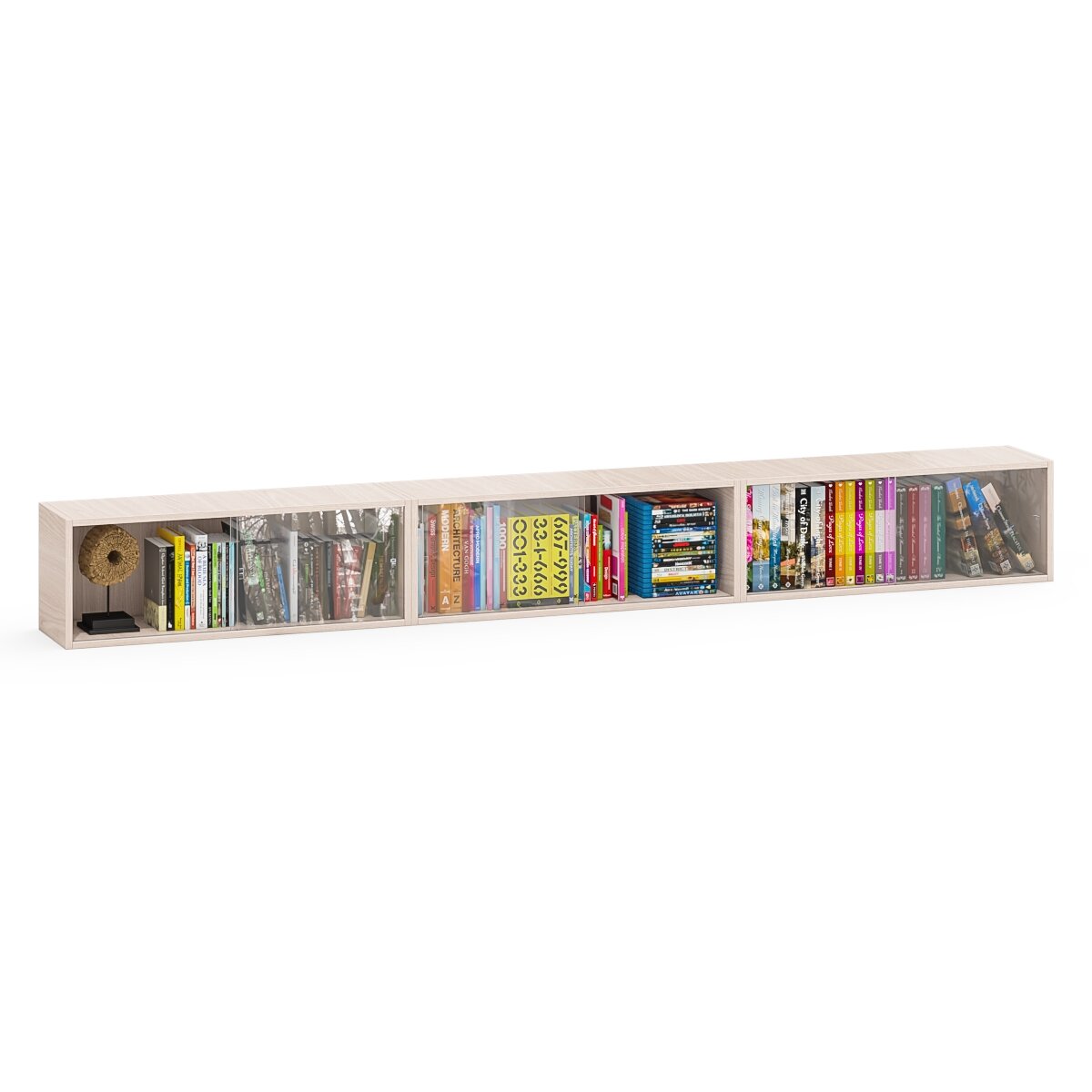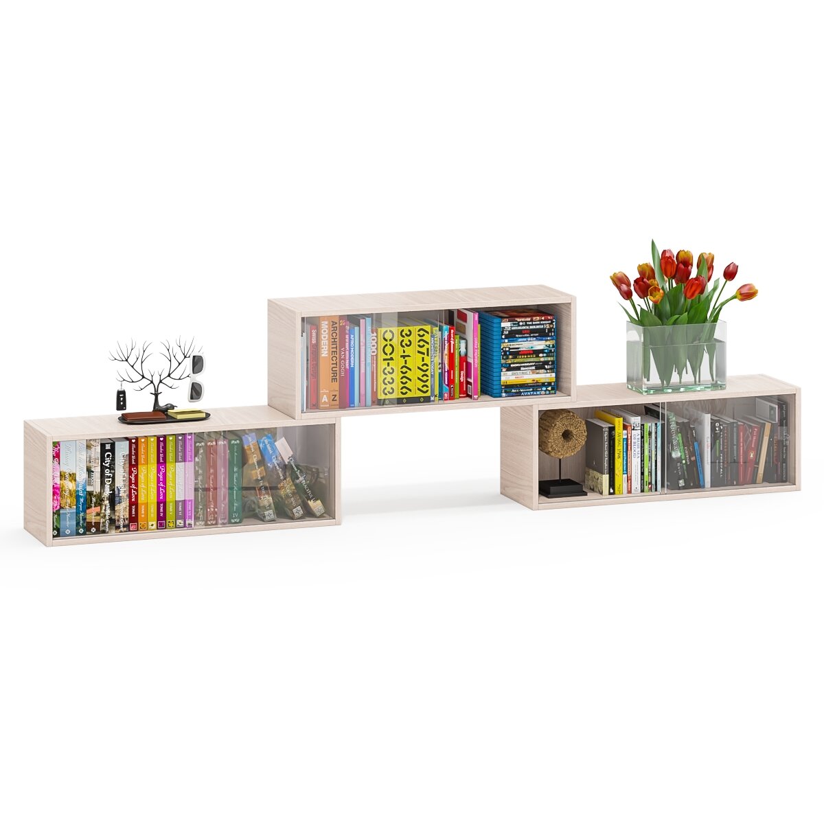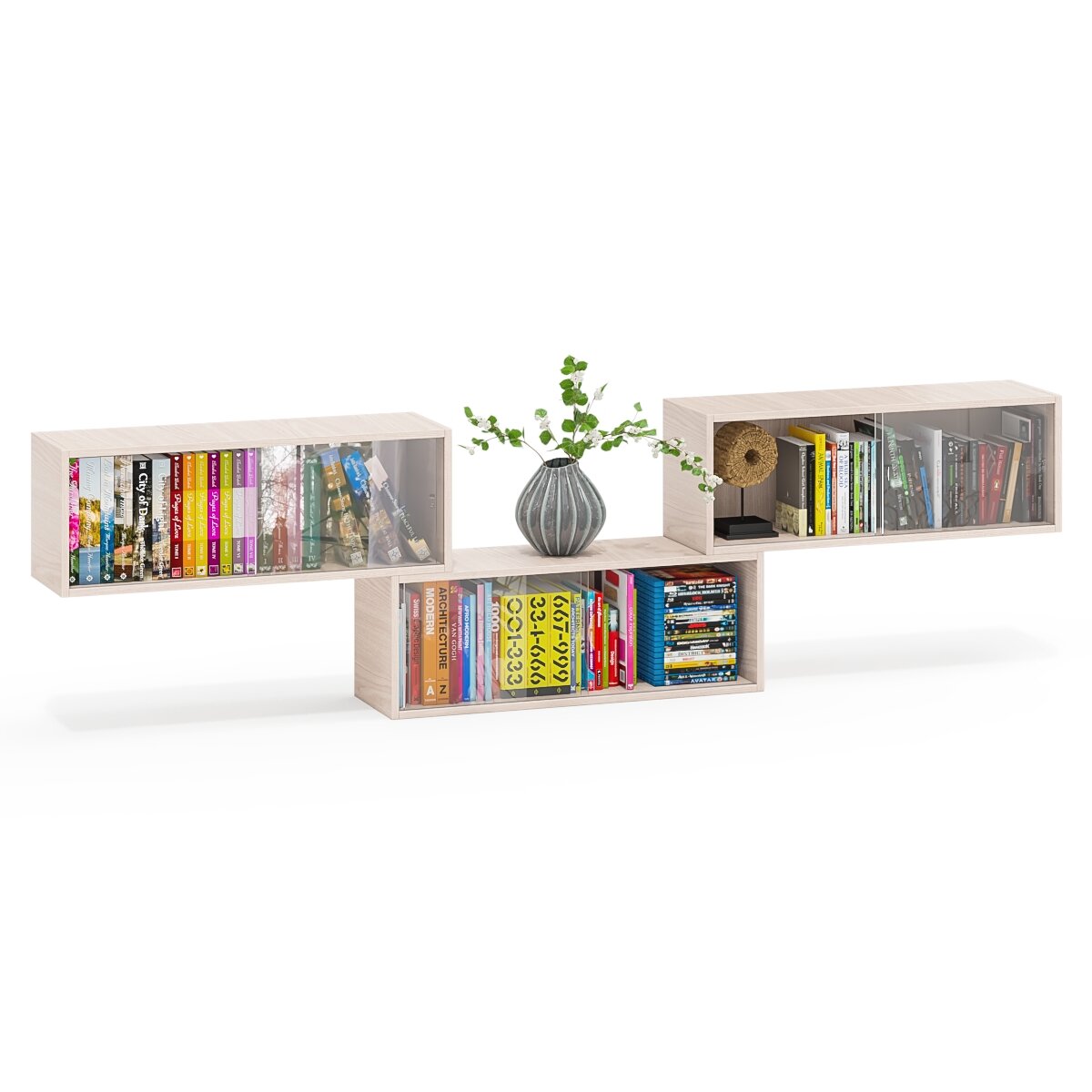 Купить Три книжные полки Мебельный Двор КН1 со стеклянными сдвижными дверками цвет шимо светлый