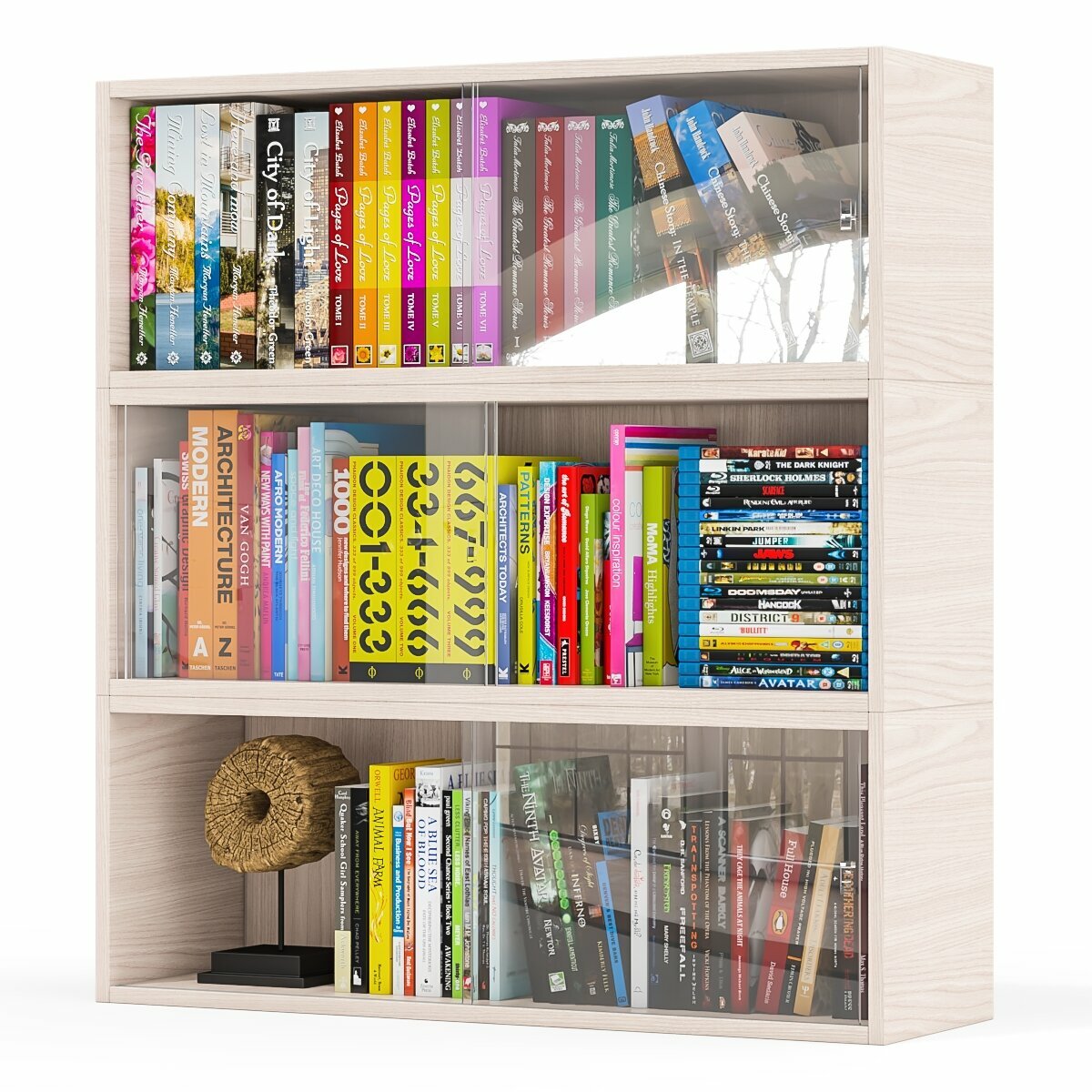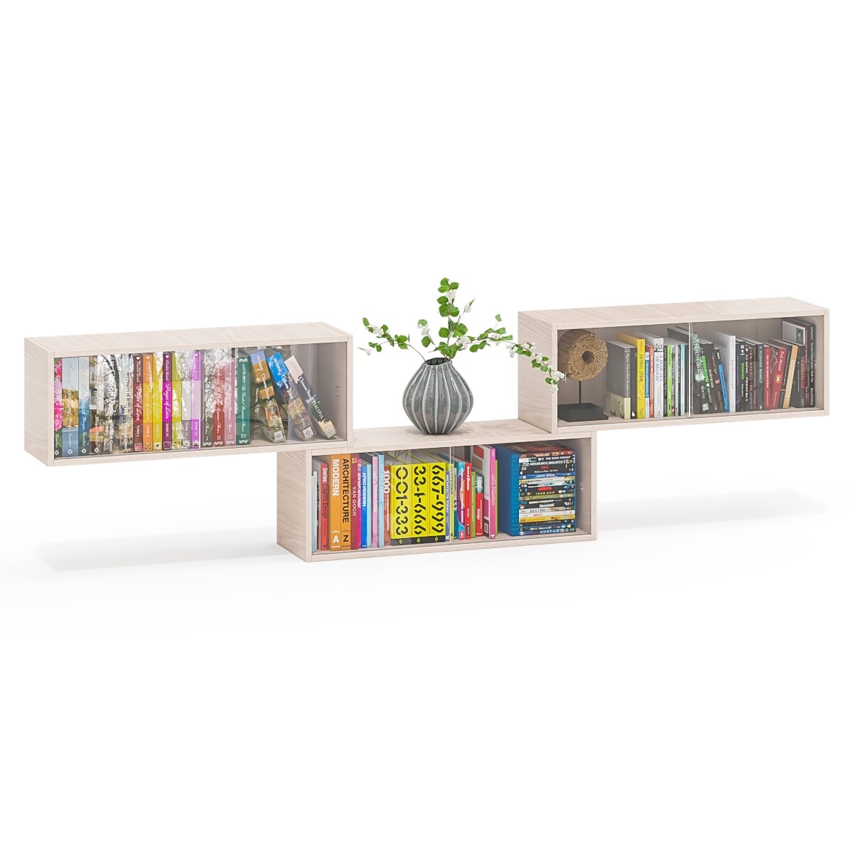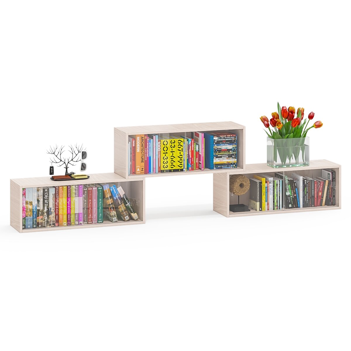Купить Три книжные полки Мебельный Двор КН1 со стеклянными сдвижными дверками цвет шимо светлый