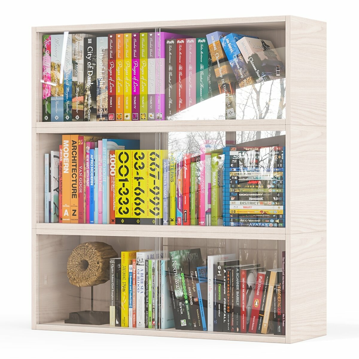 СохранитьТри книжные полки Мебельный Двор КН1 со стеклянными сдвижными дверками цвет шимо светлый интересное: