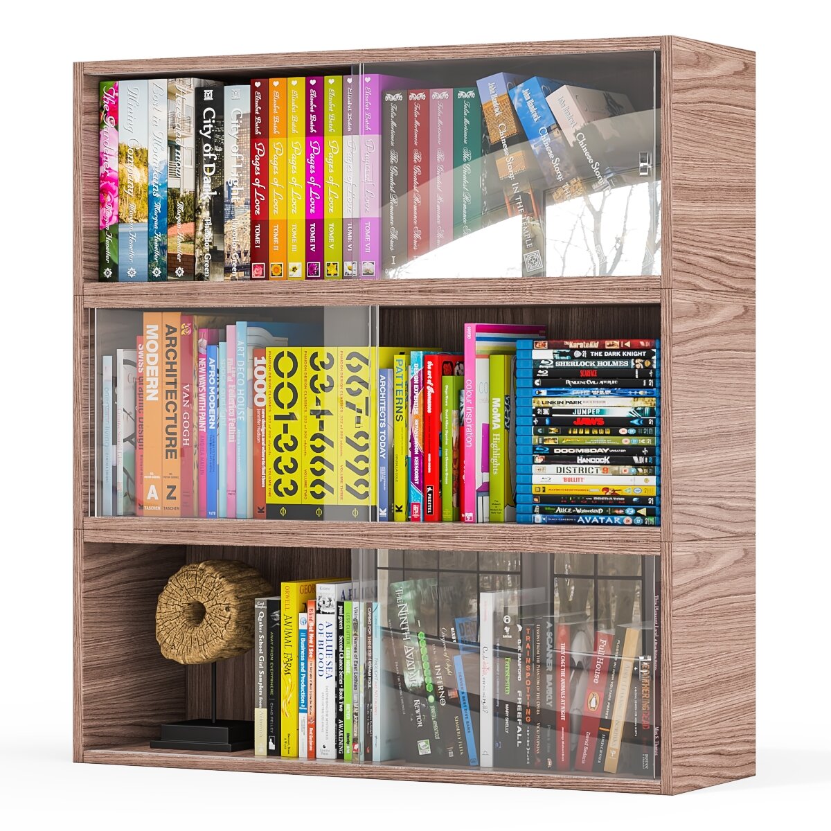 Три книжные полки Мебельный Двор КН1 со стеклянными сдвижными дверками цвет венге/дуб