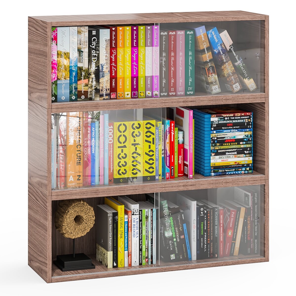 Купить Три книжные полки Мебельный Двор КН1 со стеклянными сдвижными дверками цвет шимо тёмный