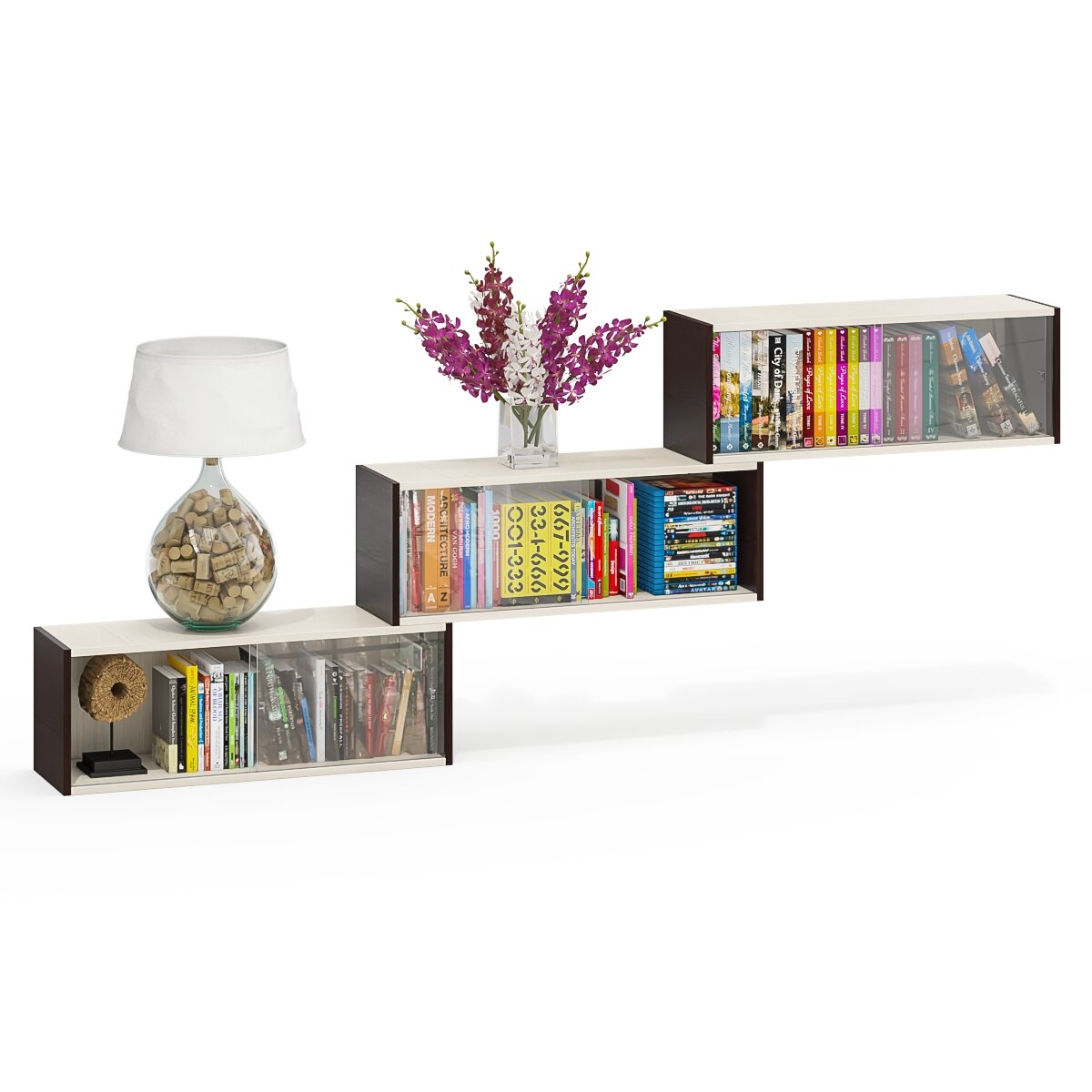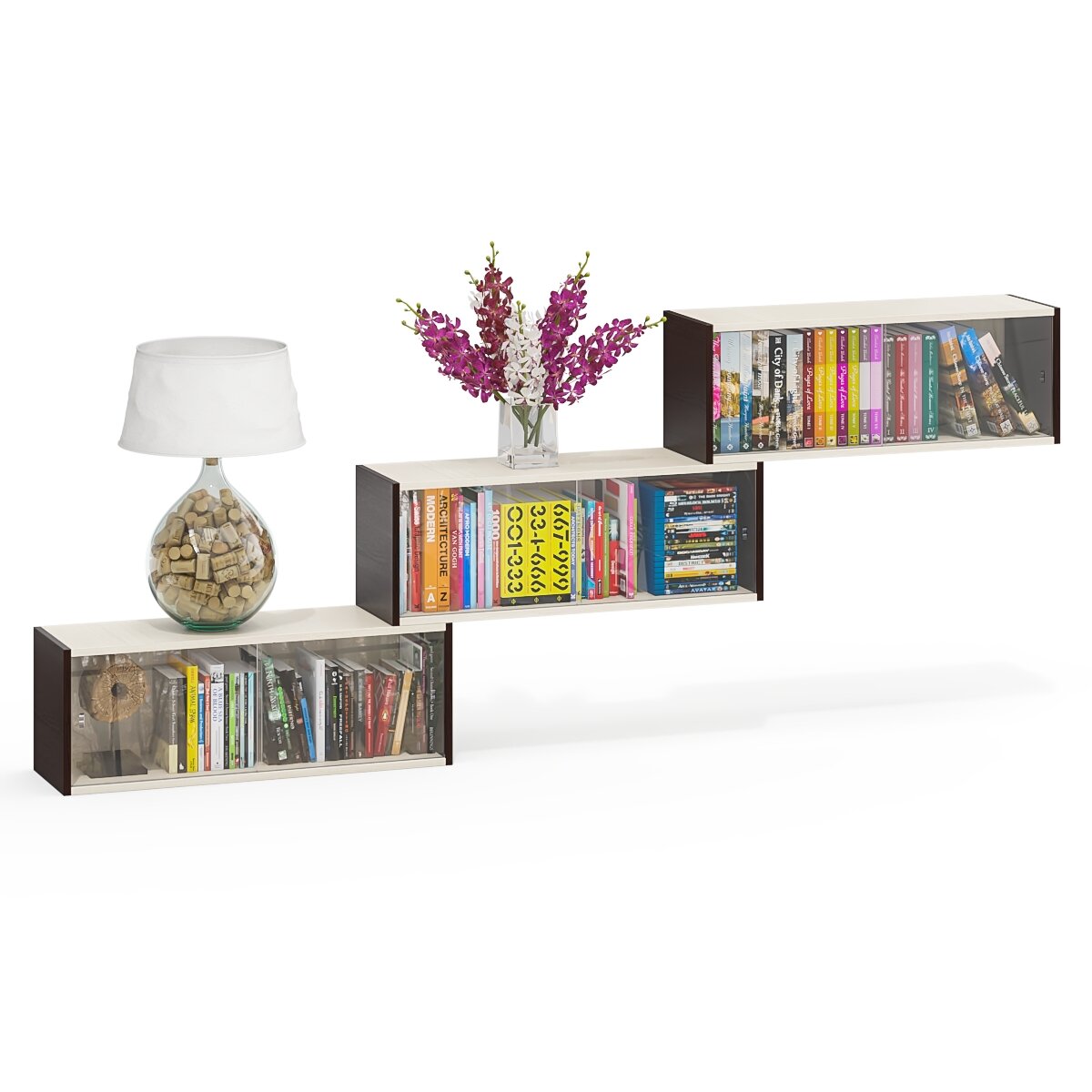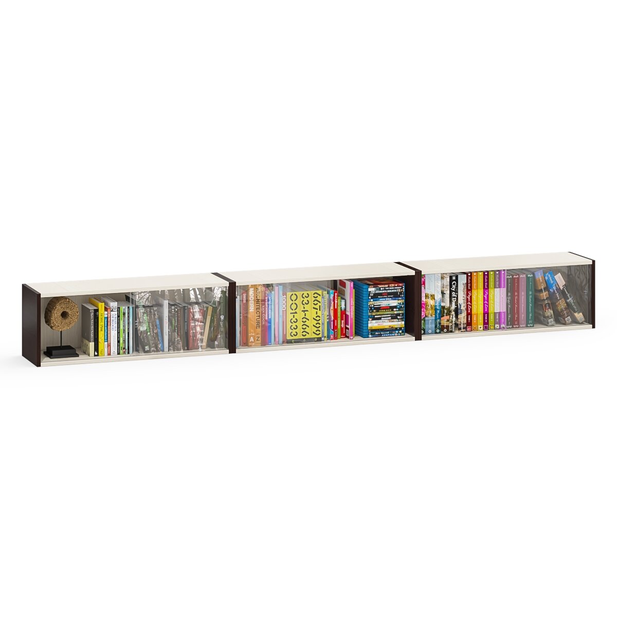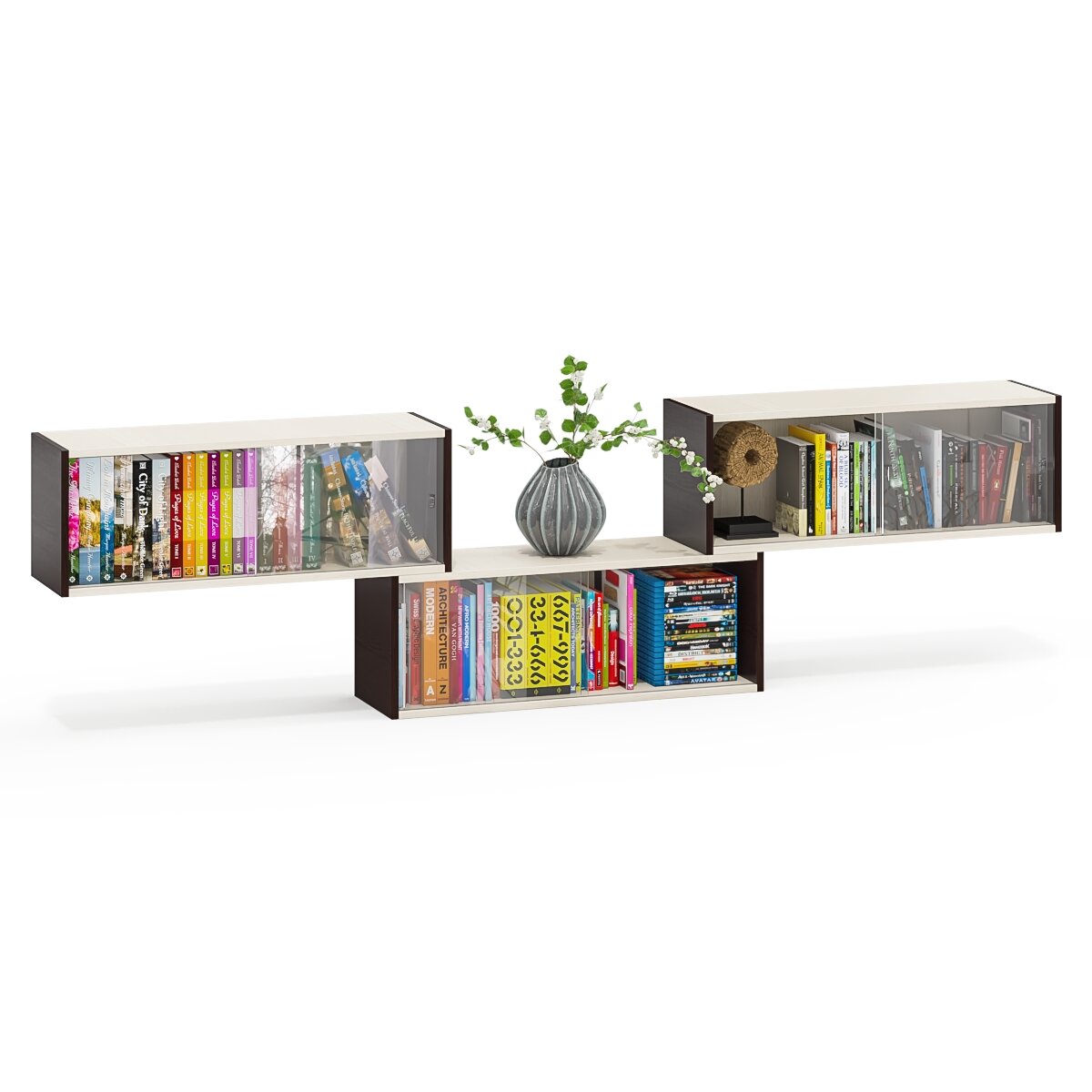 Купить Три книжные полки Мебельный Двор КН1 со стеклянными сдвижными дверками цвет венге/дуб