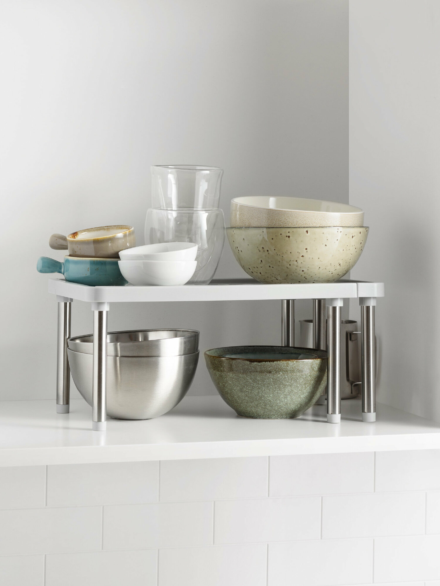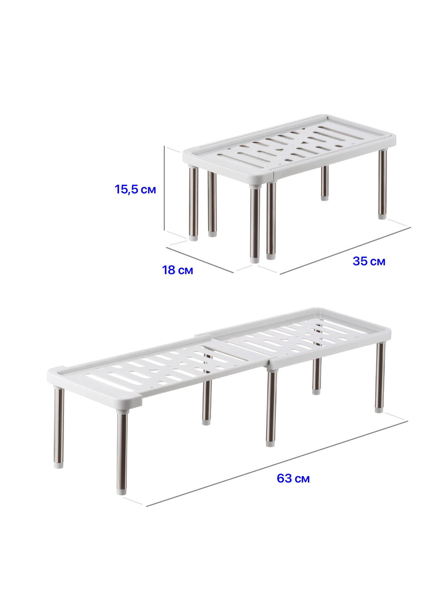 Полка подставка в кухонный шкаф раздвижная Birdhouse, Полочка дополнительная в шкаф для кухни, белая