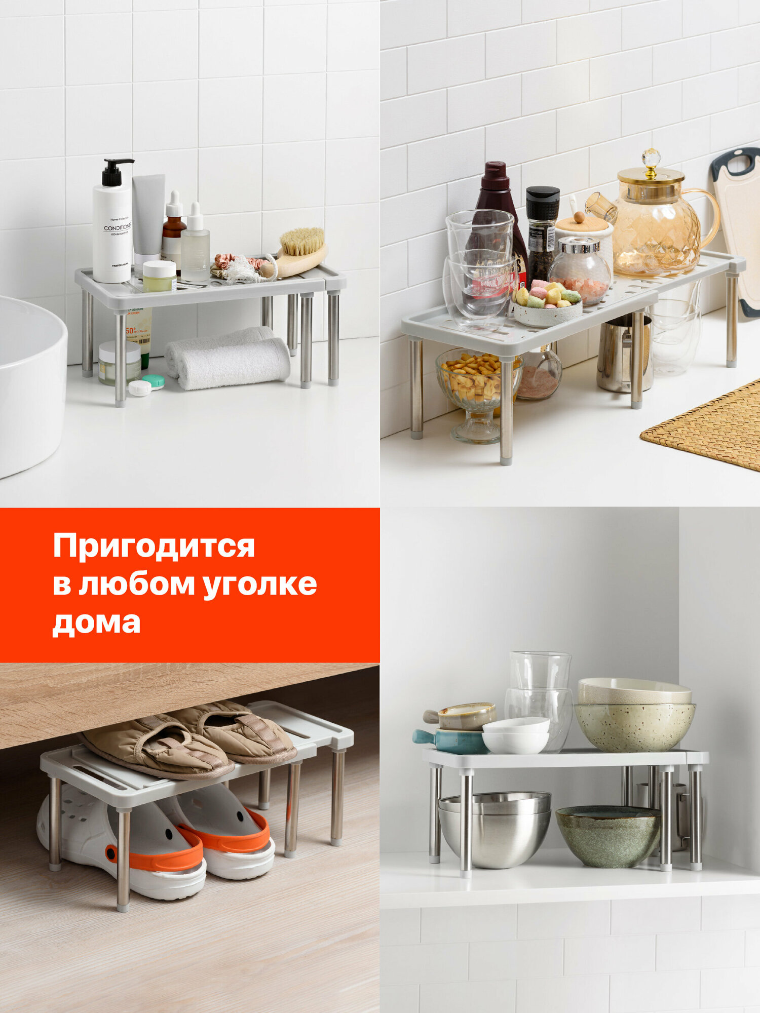 Полка в шкаф раздвижная Birdhouse/ Полочка дополнительная в шкаф для кухни/ Полка подставка в кухонный шкаф, Серый интересное: