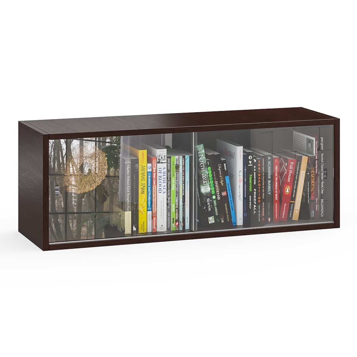 Три книжные полки Мебельный Двор КН1 со стеклянными сдвижными дверками цвет шимо тёмный