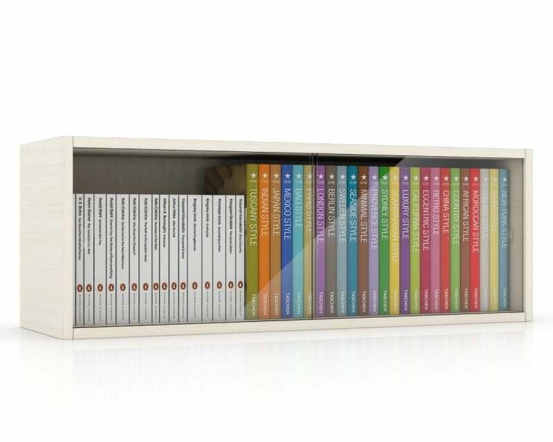 Три книжные полки Мебельный Двор КН1 со стеклянными сдвижными дверками цвет шимо светлый