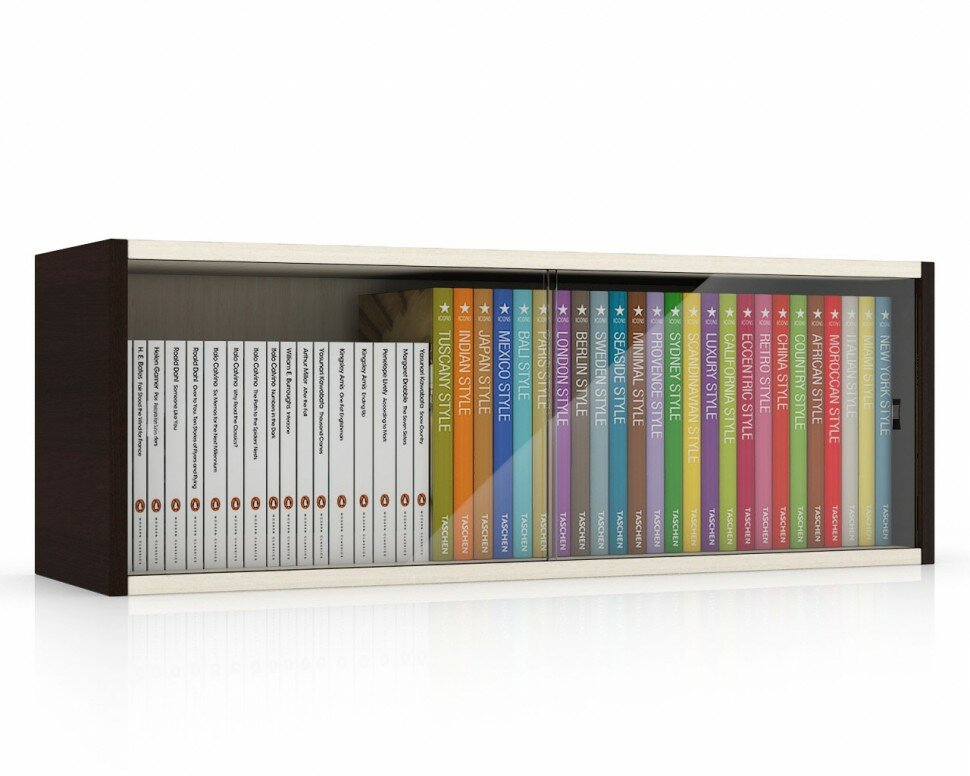 Три книжные полки Мебельный Двор КН1 со стеклянными сдвижными дверками цвет венге/дуб