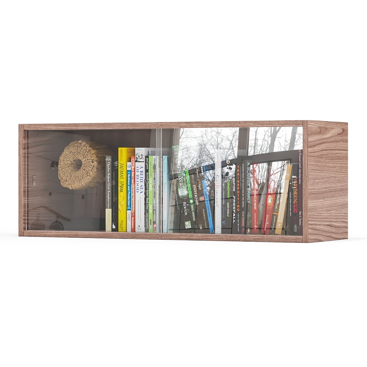 Полка книжная со стеклом Мебельный Двор С-МД-КН01 цвет ясень шимо светлый, 83х25х30 см