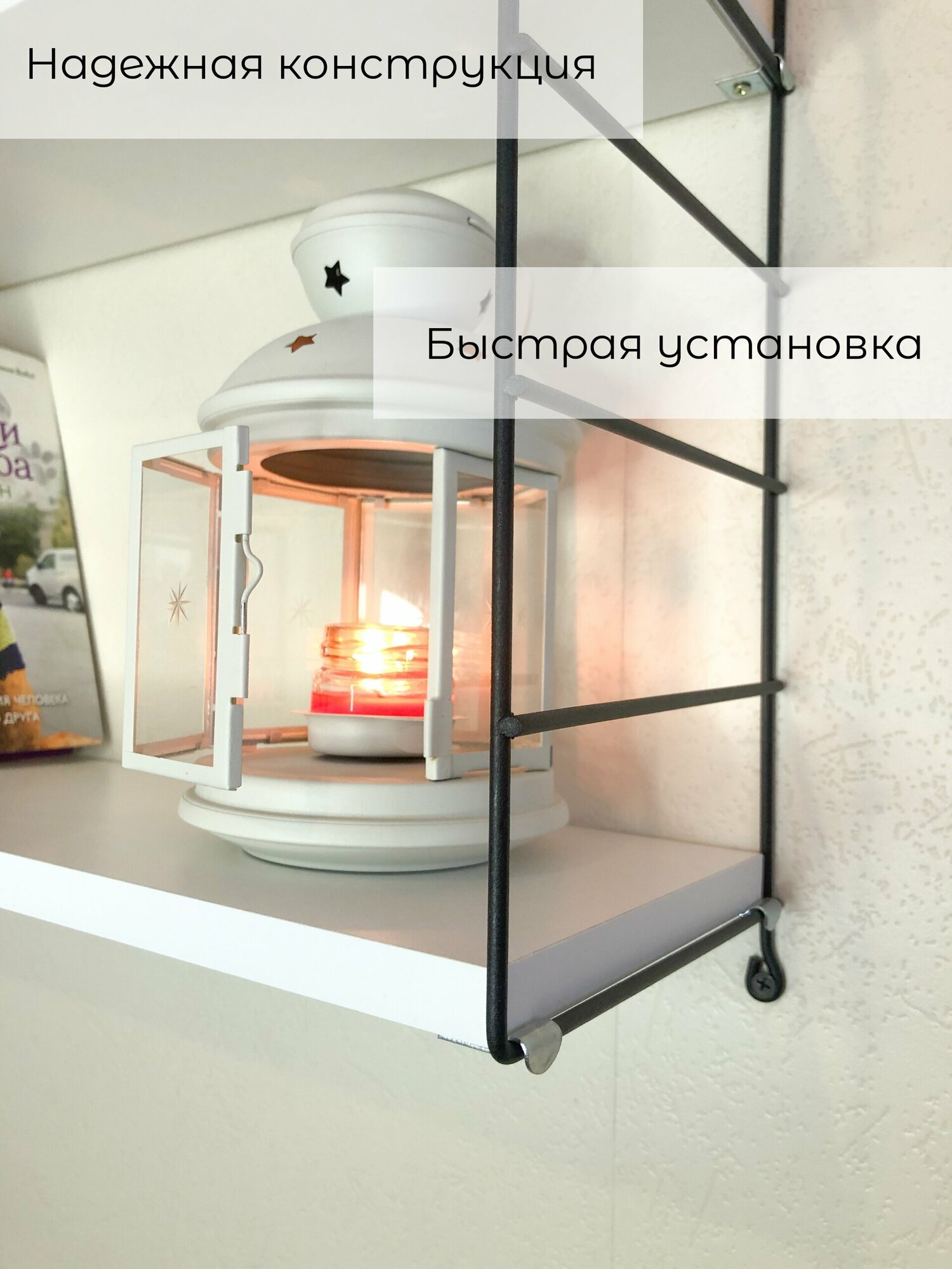 Полка настенная навесная на металлических кронштейнах; модель Грация №4, 50см х 16см,х 51см,цвет--белый интересное: