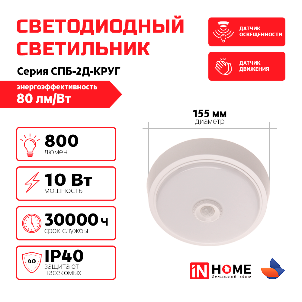 Ниже Вы можете прочитать отзывы на Светильник светодиодный СПБ-2Д-КРУГ 10Вт 230В 4000К 800лм 155мм с настраиваемым датчиком белый IN HOME, ознакомится с подробными характеристиками, посмотреть интересные обзоры и фотографии на Светильник светодиодный СПБ-2Д-КРУГ 10Вт 230В 4000К 800лм 155мм с настраиваемым датчиком белый IN HOME.