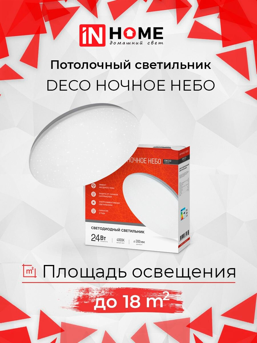 Светильник светодиодный DECO Ночное небо 24Вт 4000К 1560лм 230В 300х55мм IN HOME 4690612033518