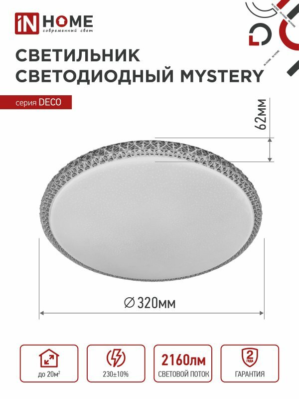 Купить Светильник светодиодный DECO MYSTERY 24Вт 6500K 2160Лм 320х62мм IN HOME 4690612051581