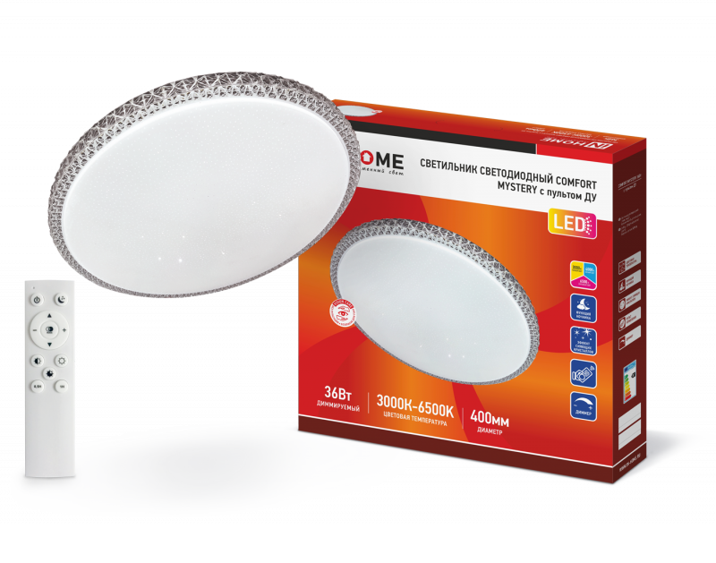 Купить Светильник светодиодный COMFORT MYSTERY 36Вт 230В 3000-6500K 2900Лм 400x70мм с пультом ДУ IN HOME