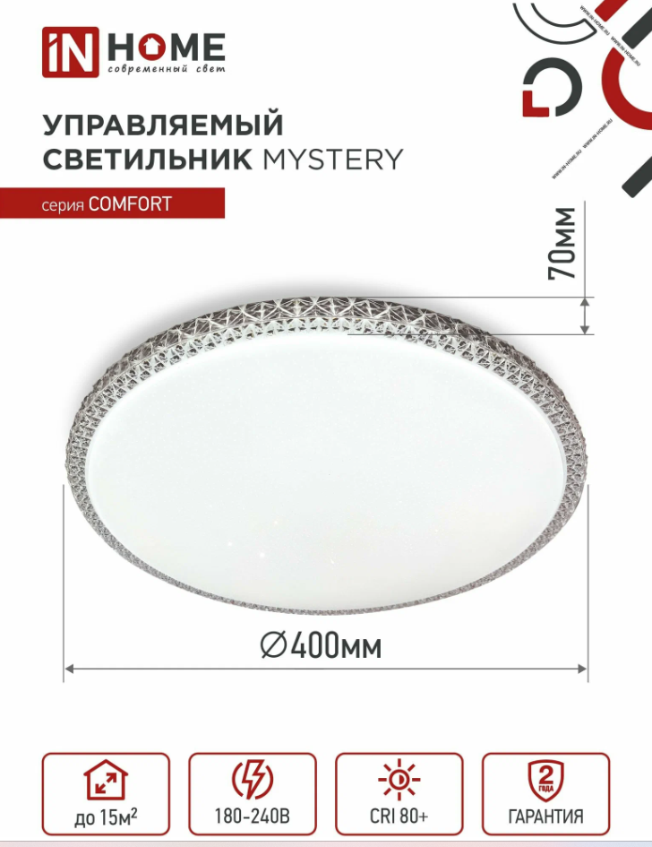 Светильник потолочный светодиодный IN HOME COMFORT MYSTERY 36Вт 230В 3000-6500K 2900Лм 400x70мм с пультом ДУ