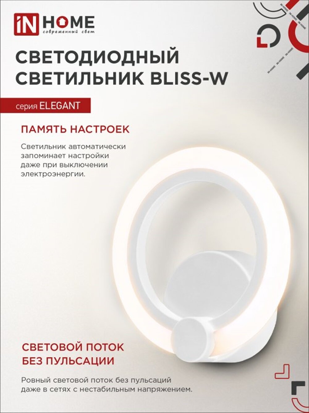 СохранитьСветильник потолочный светодиодный IN HOME ELEGANT BLISS-15W 15Вт 230В 3000-4000-6500K 1050Лм STEP COLOR белый интересное: