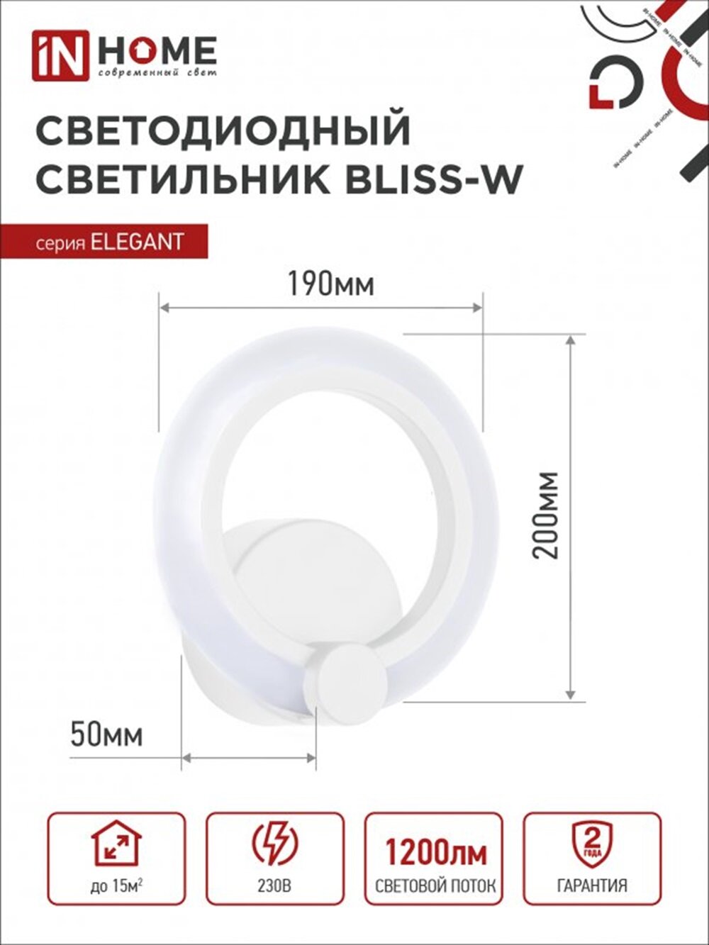 Светильник светодиодный DECO 12Вт 230В 6500К 780лм 190мм глория IN HOME 4690612022222 (1 шт.)