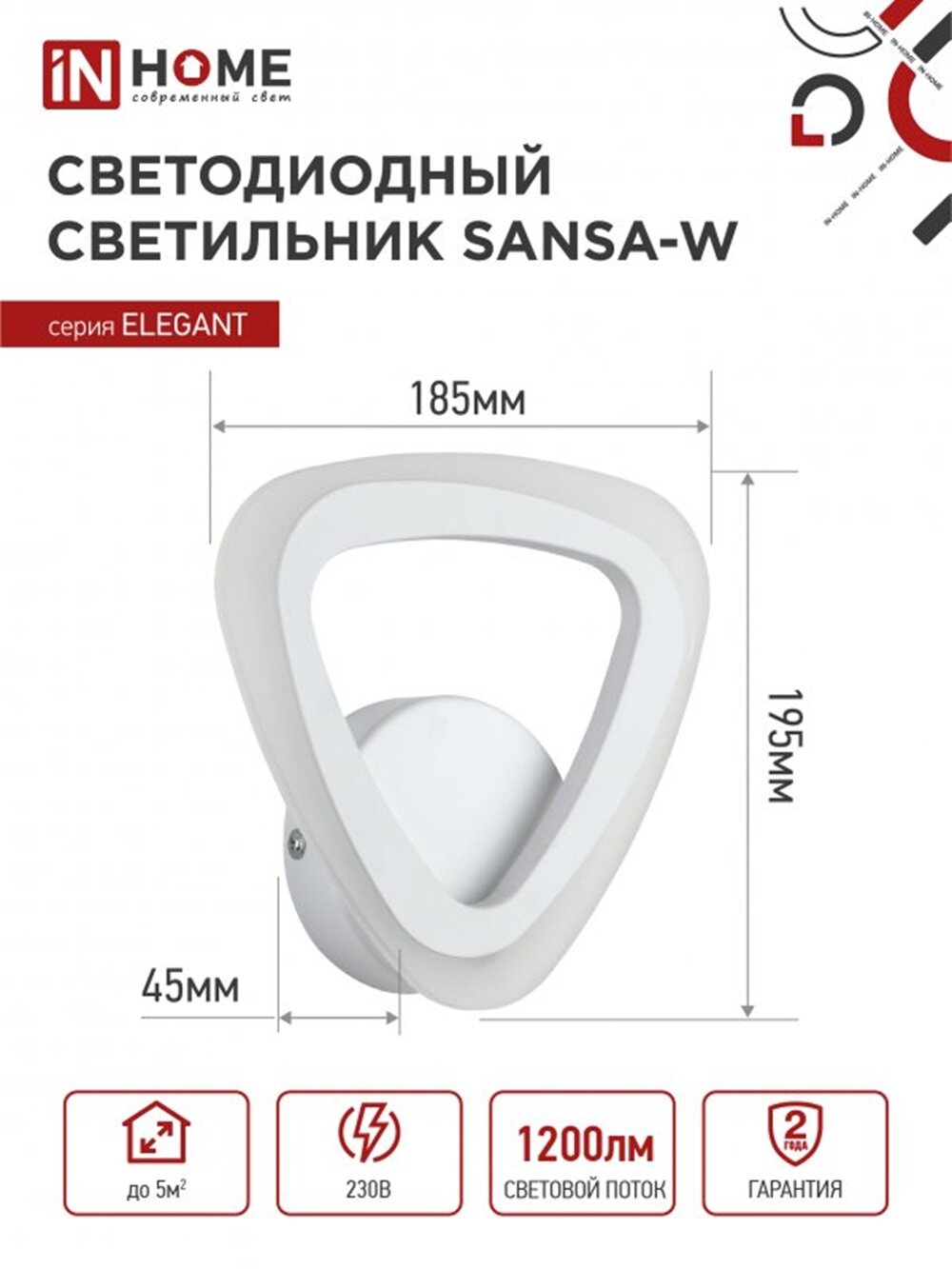 Купить Светодиодный светильник IN HOME ELEGANT SANSA-W 15Вт 230В 3000-6500K 1200Лм STEP COLOR белый