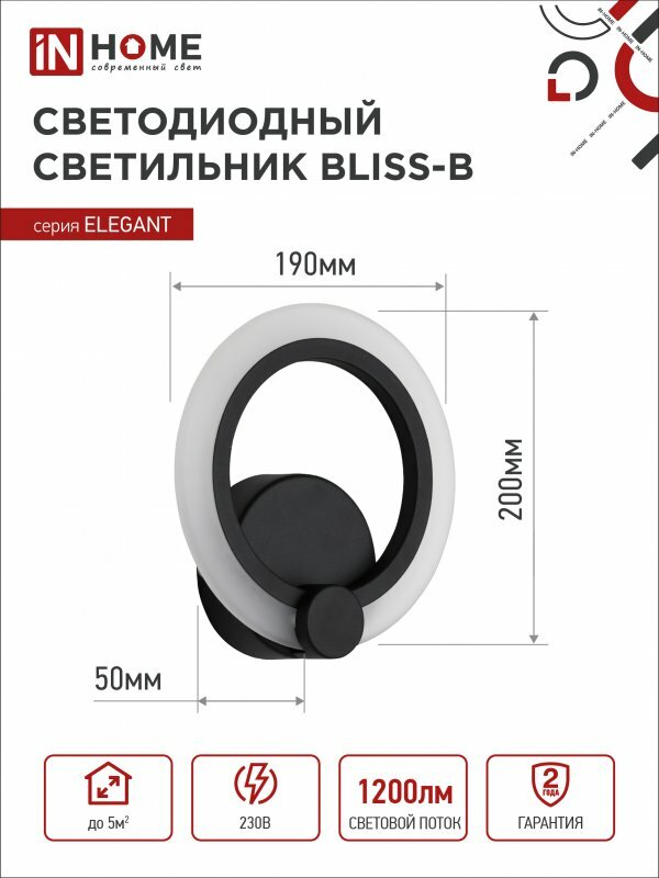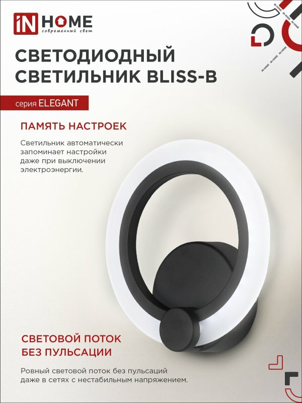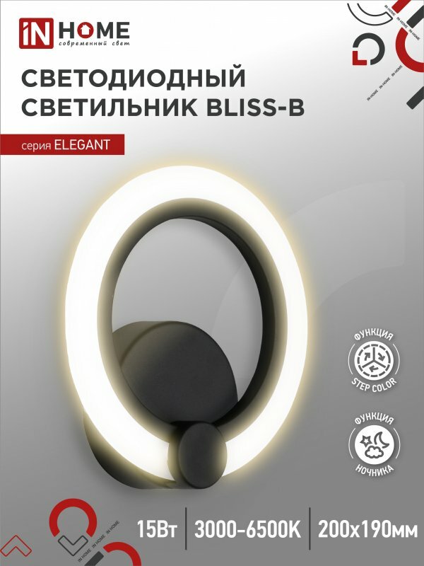 Купить Светильник сд ELEGANT BLISS-B 15Вт 230В 3000-6500K 1200Лм STEP COLOR черный IN HOME (1/20)
