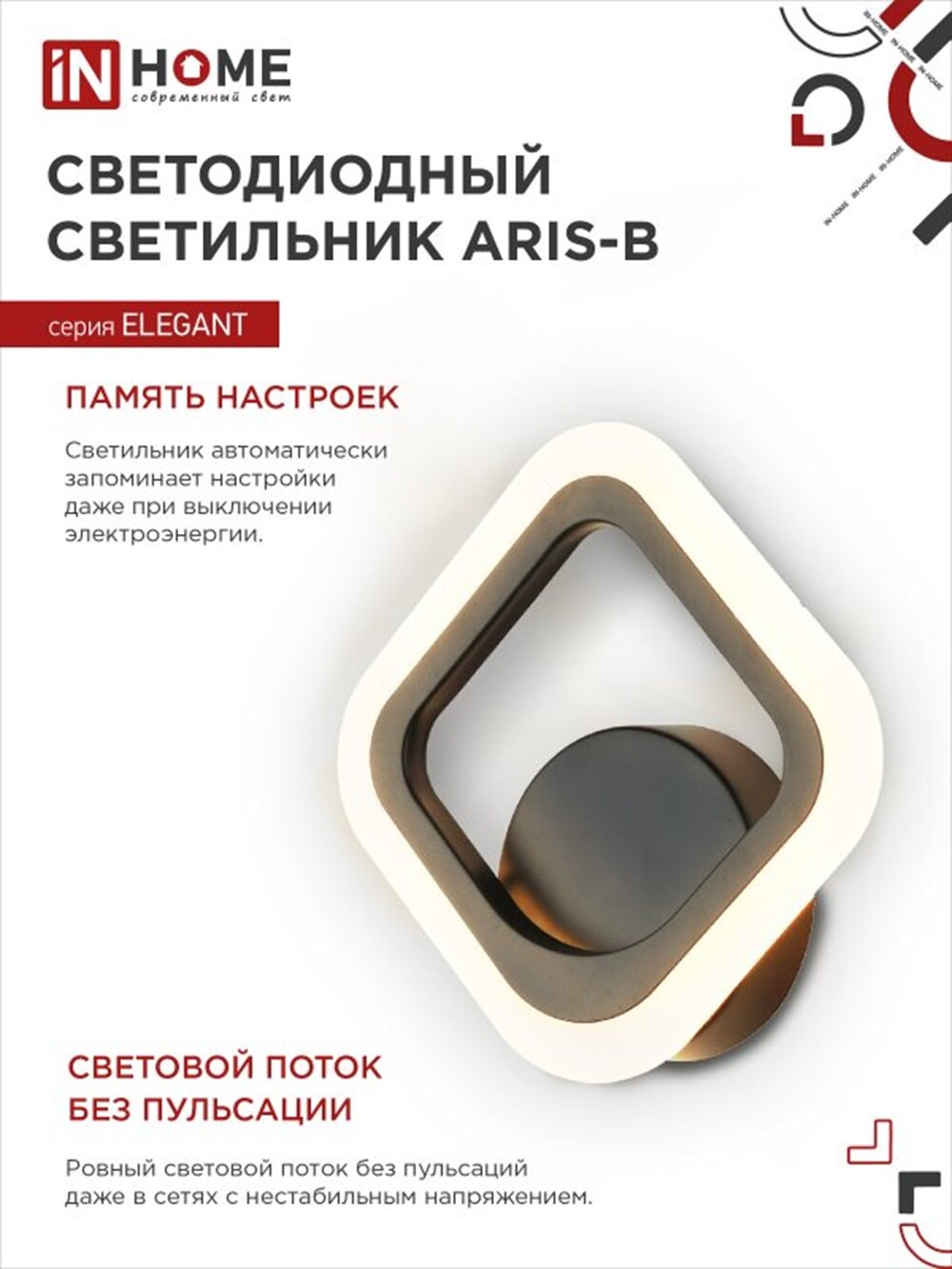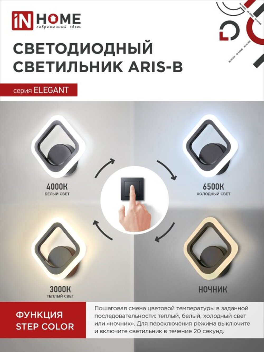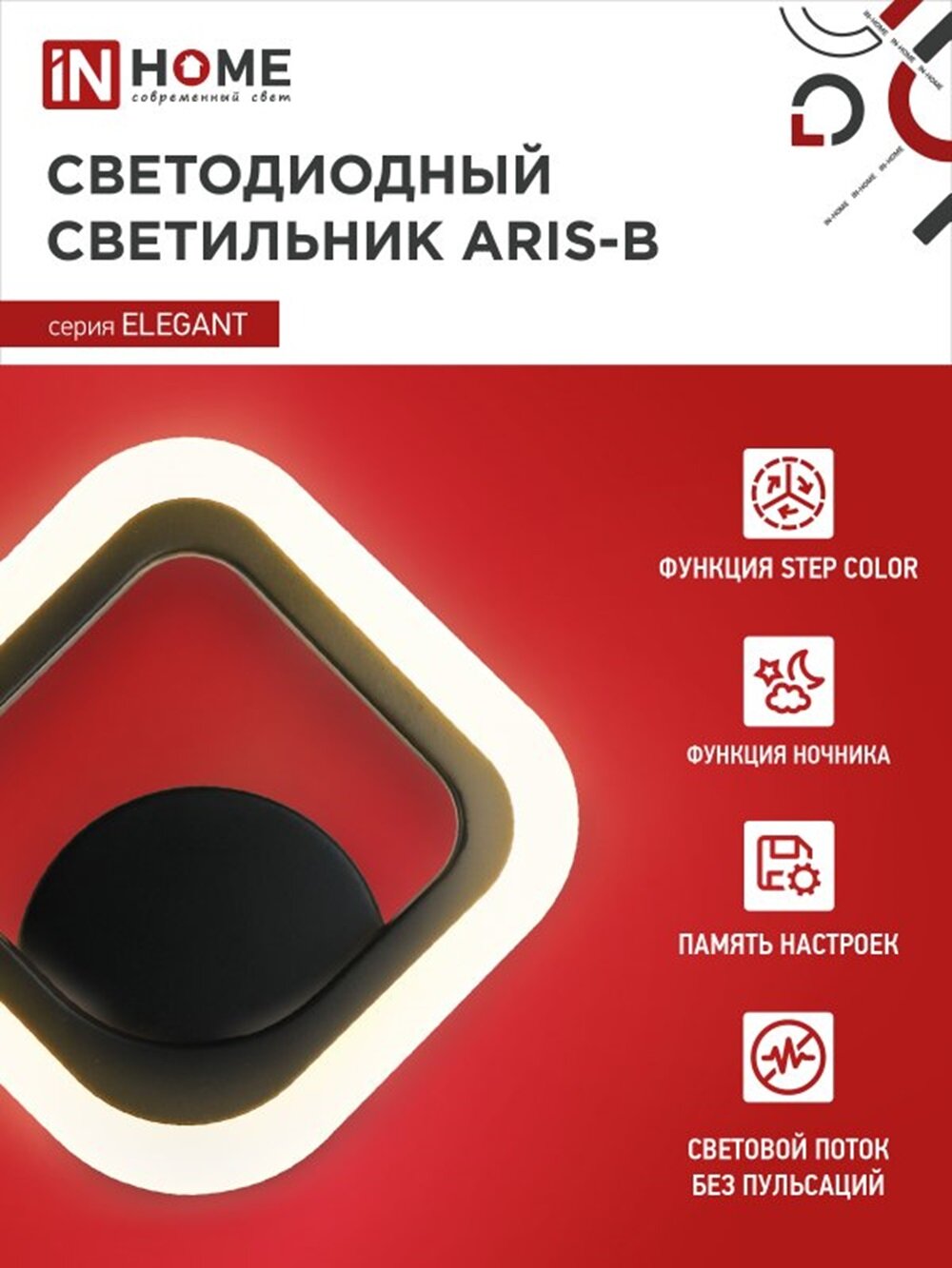 СохранитьСветильник потолочный светодиодный IN HOME ELEGANT ARIS-15B 15Вт 230В 3000-4000-6500K 1050Лм STEP COLOR черный интересное: