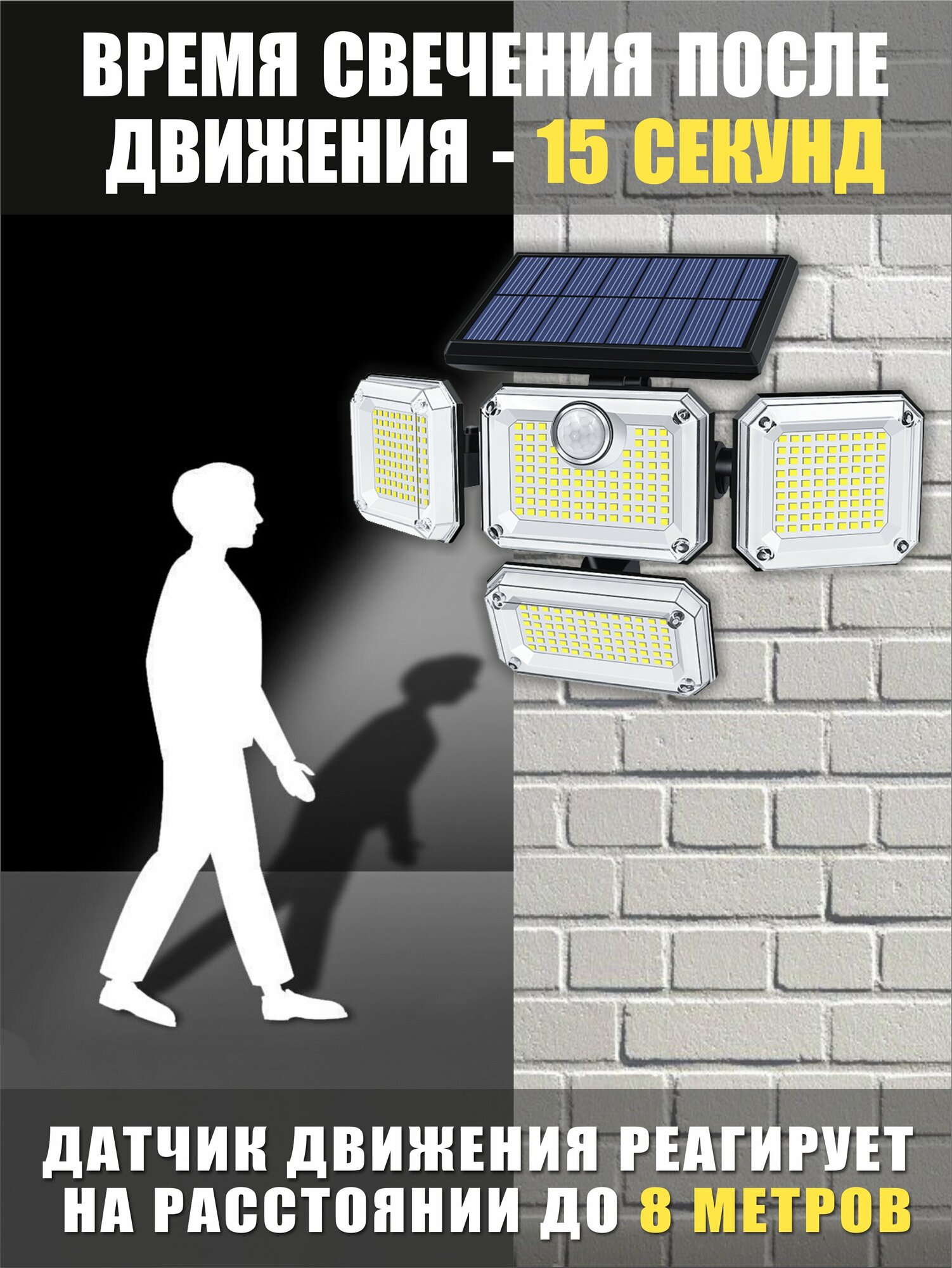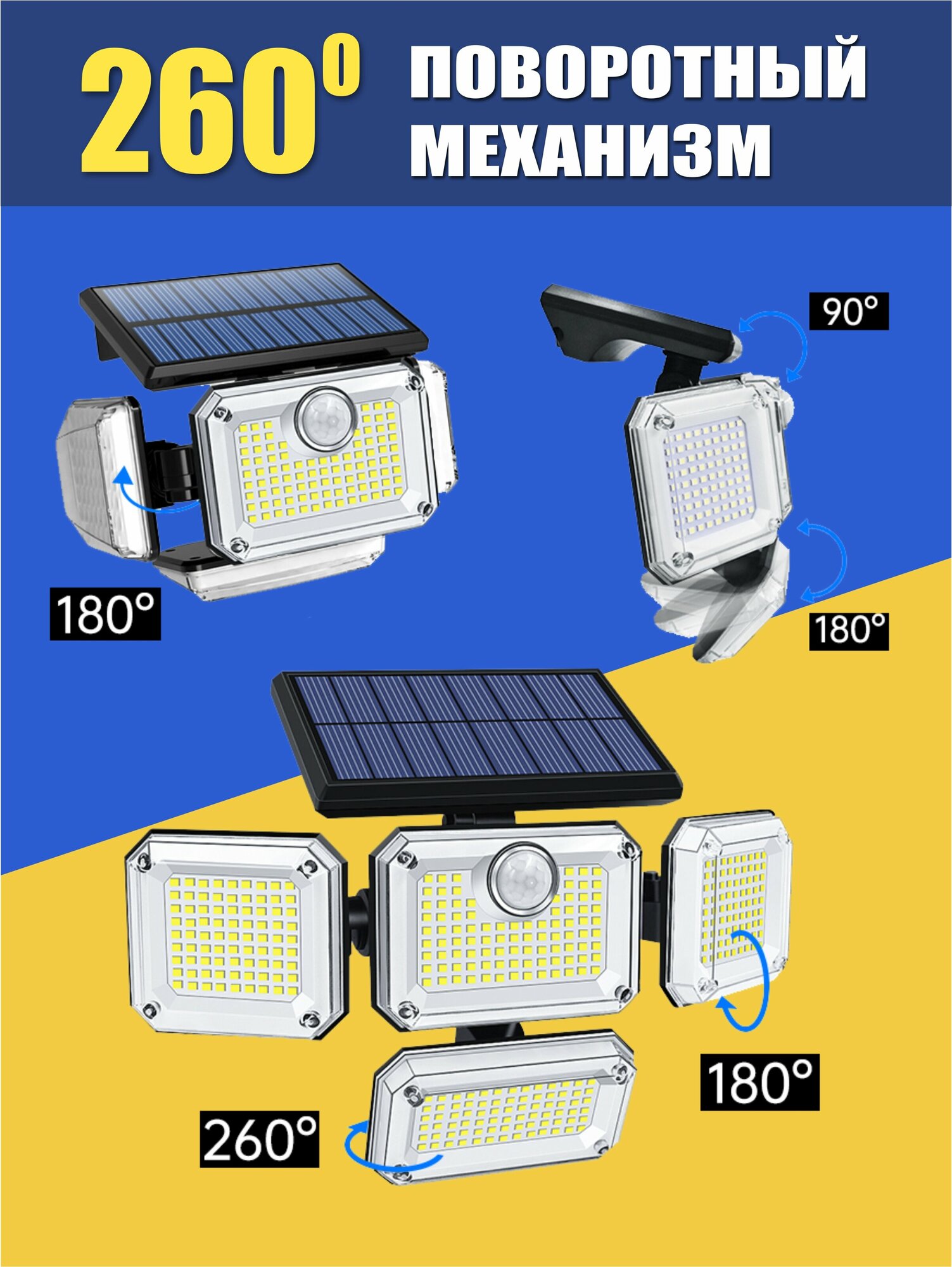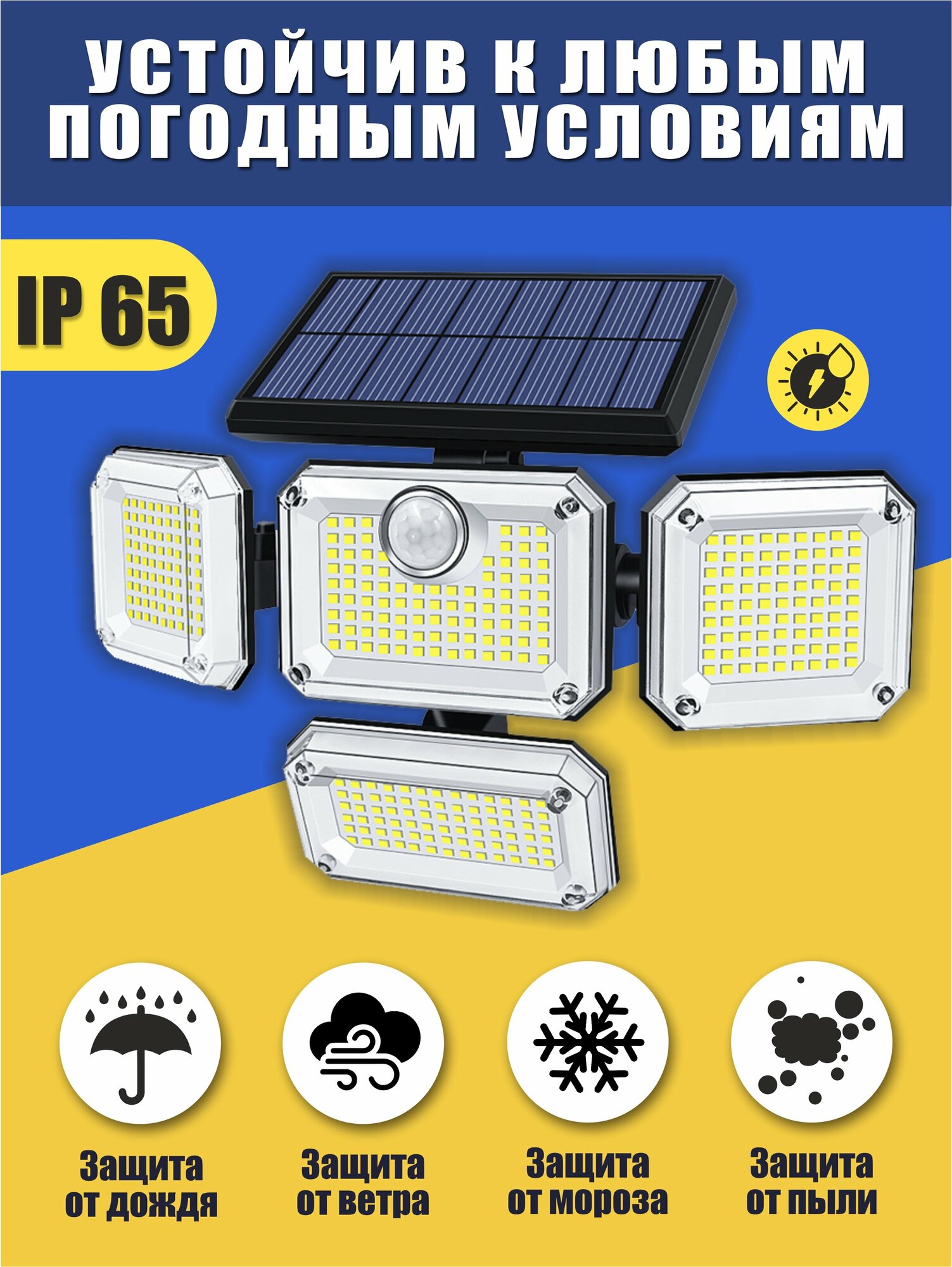 Прожектор уличный 4 поворотные лампы, с датчиком движения, на солнечной батарее интересное: