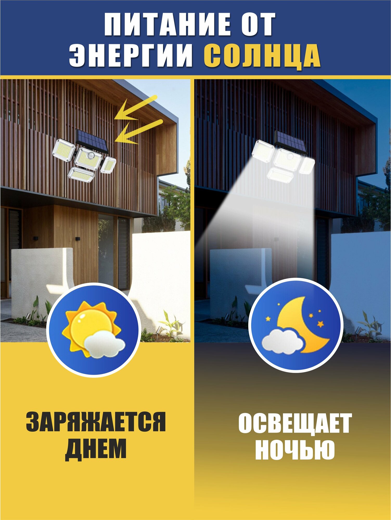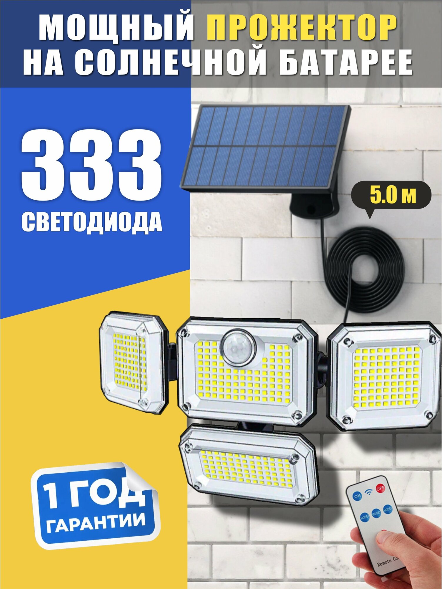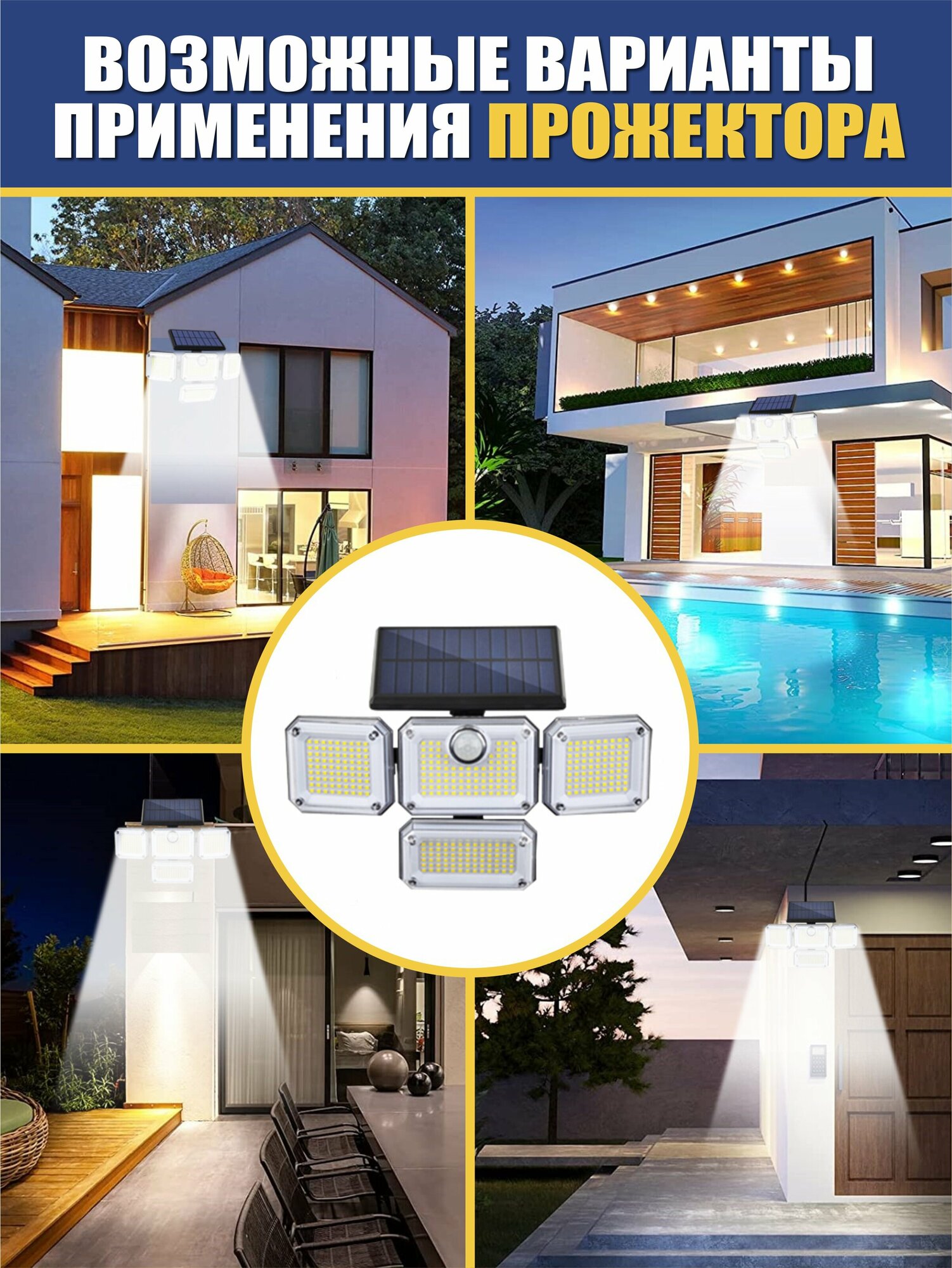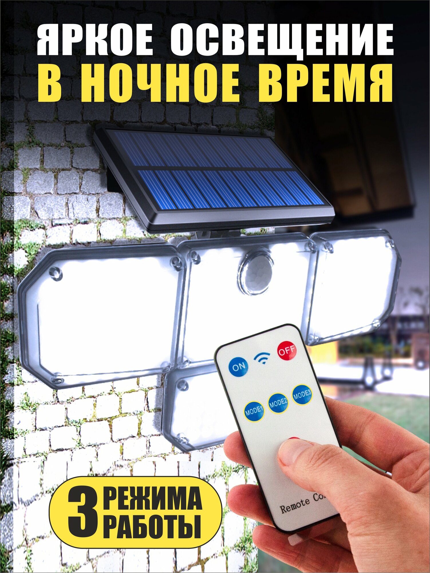 Прожектор уличный 4 поворотные лампы, с датчиком движения, на солнечной батарее интересное: