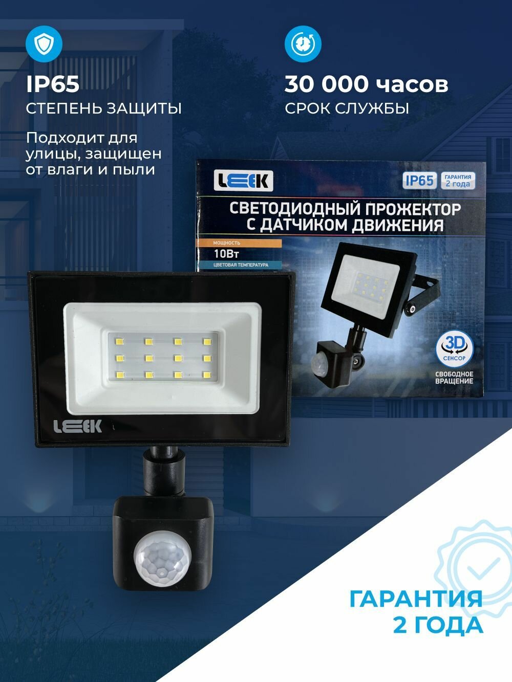 СохранитьПрожектор светодиодный 10Вт с датчиком движения, IP65, для внутреннего и наружного освещения дворов, подьездов, охраняемых территорий, влагостойкий, LEEK интересное: