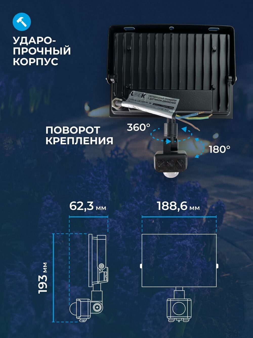 Прожектор светодиодный 30Вт с датчиком движения, IP65, для внутреннего и наружного освещения дворов, подьездов, охраняемых территорий, влагостойкий, LEEK