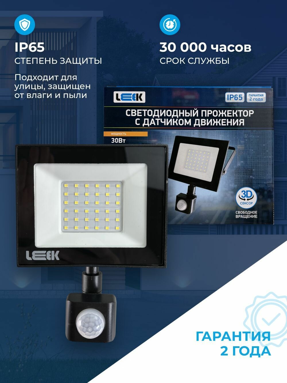 СохранитьПрожектор светодиодный 30Вт с датчиком движения, IP65, для внутреннего и наружного освещения дворов, подьездов, охраняемых территорий, влагостойкий, LEEK интересное: