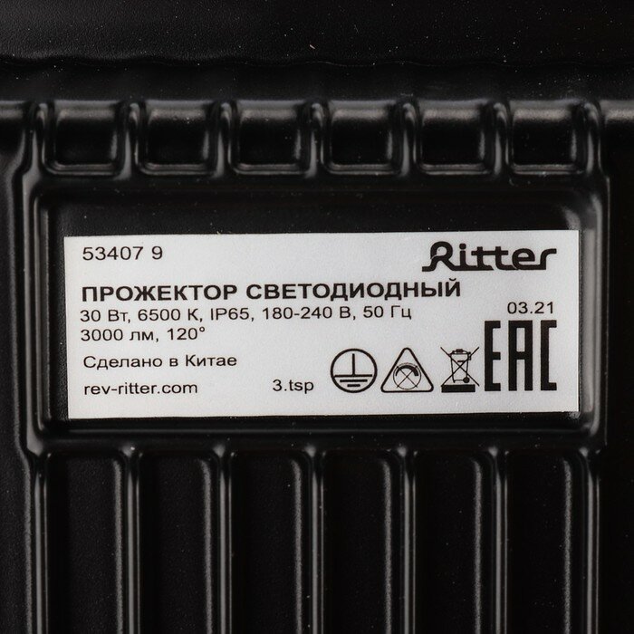 Купить RITTER Прожектор светодиодный серия PROFI 230В 30 Вт 6500К 3000Лм IP65 черный 53407 9