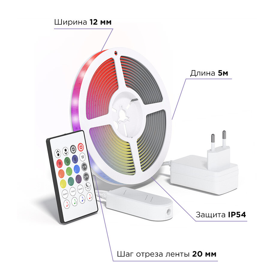 | Особенности | RGB-контроллер в комплекте / герметизация / самоклеящаяся основа |