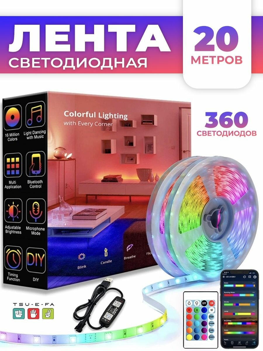 Светодиодная лента 20м многоцветная интересное: