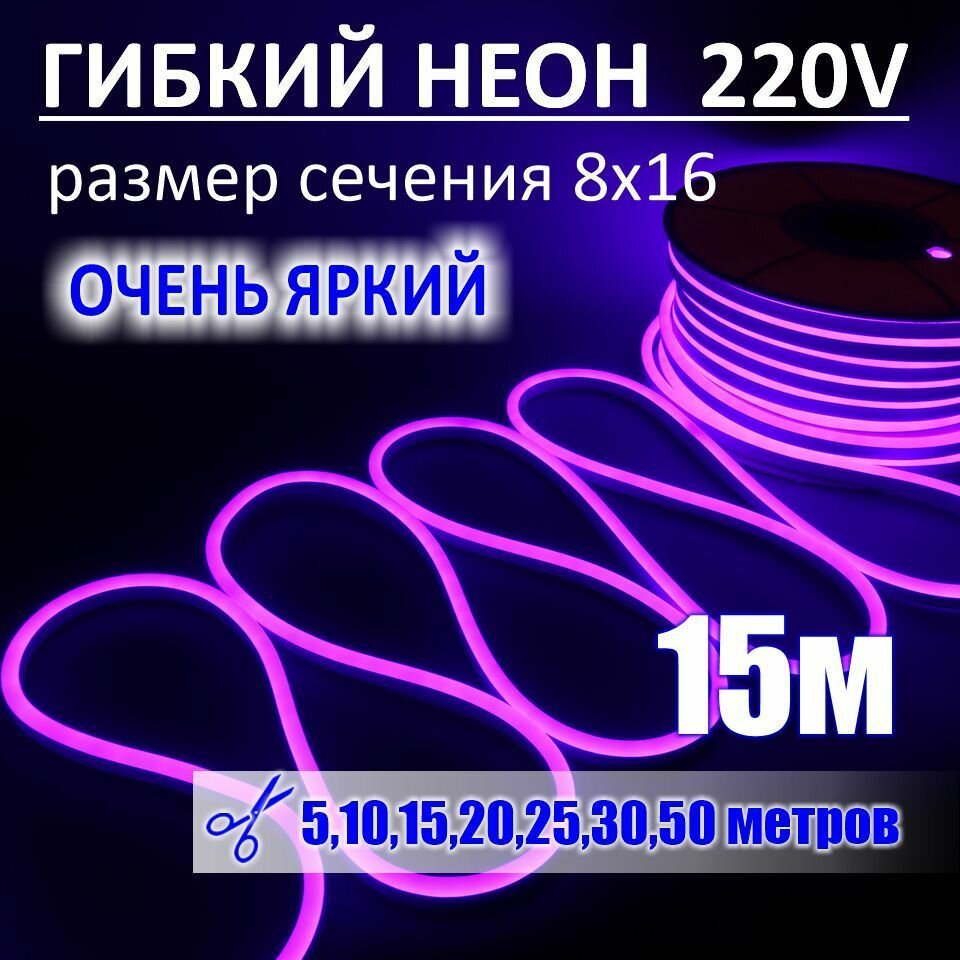 Купить Гибкий неон 220в, LUX 8х16, 144 Led/m,11W/m, фиолетовый, 15 метров