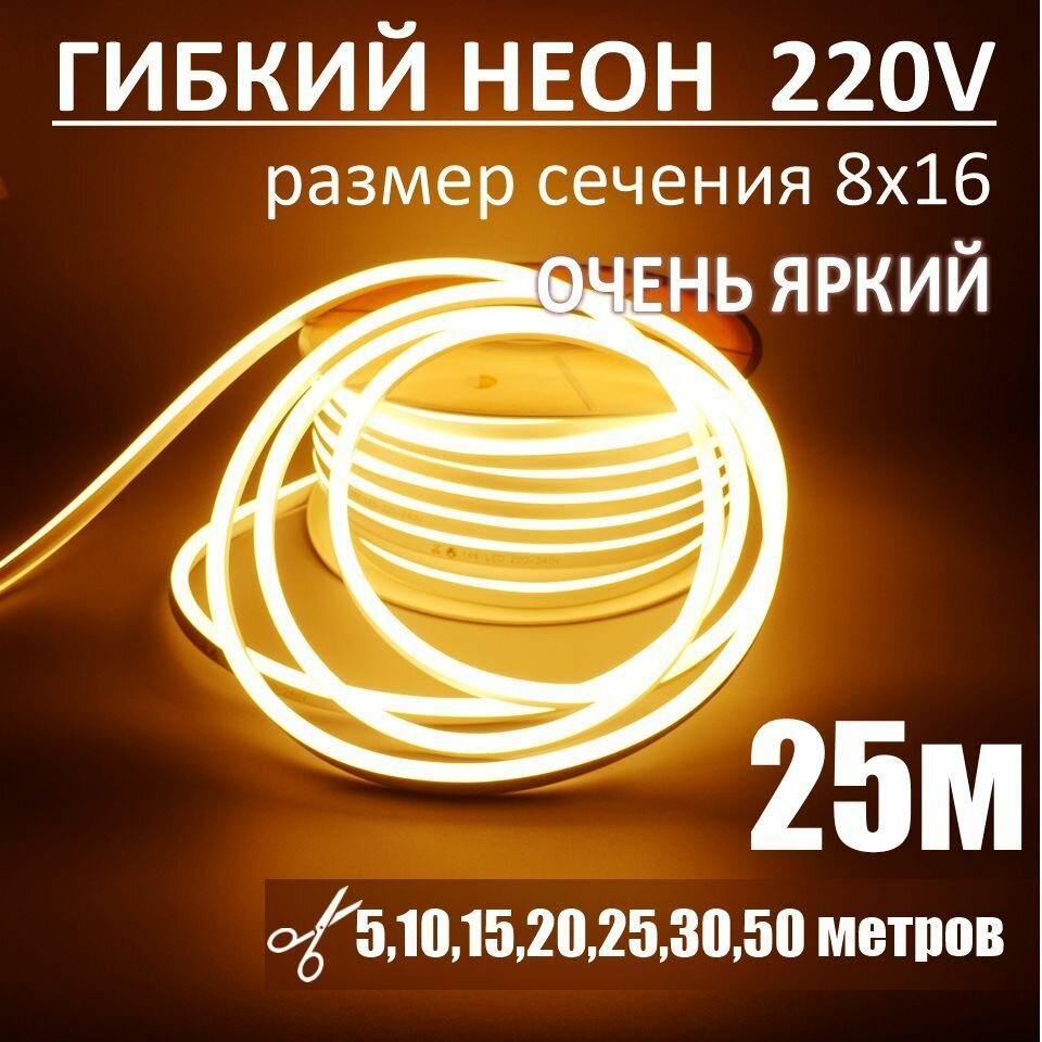 Купить Гибкий неон 220в, LUX 8х16, 144 Led/m,11W/m, теплый белый, 25 метров