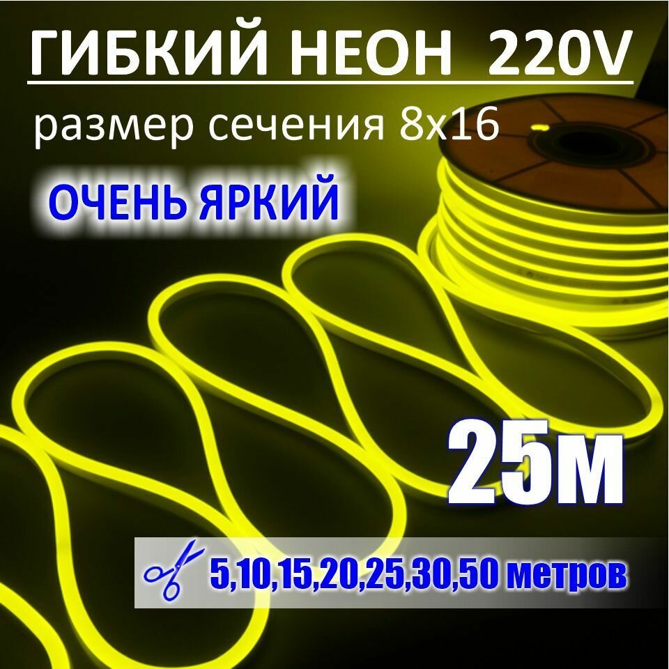 Купить Гибкий неон 220в, LUX 8х16, 144 Led/m,11W/m, лимонный, 25 метров
