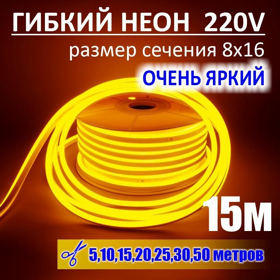 Купить Гибкий неон 220в, LUX 8х16, 144 Led/m,11W/m, желтый, 15 метров