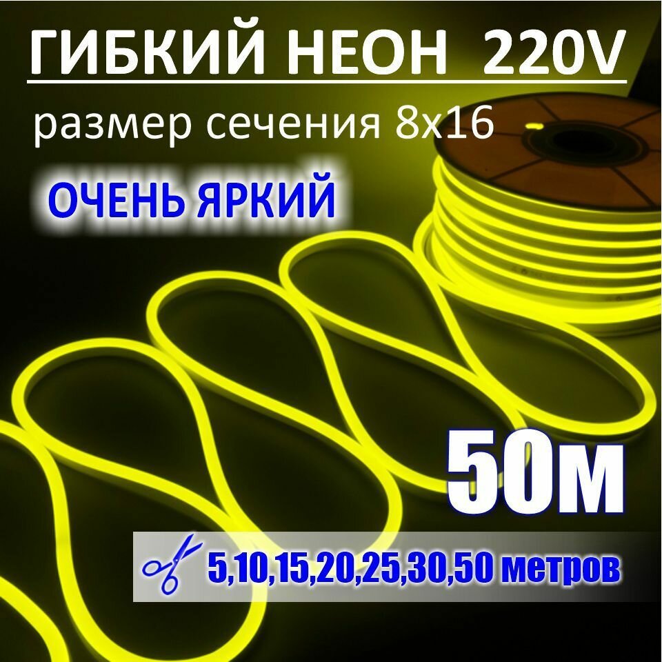 Купить Гибкий неон 220в, LUX 8х16, 144 Led/m,11W/m, лимонный, 50 метров