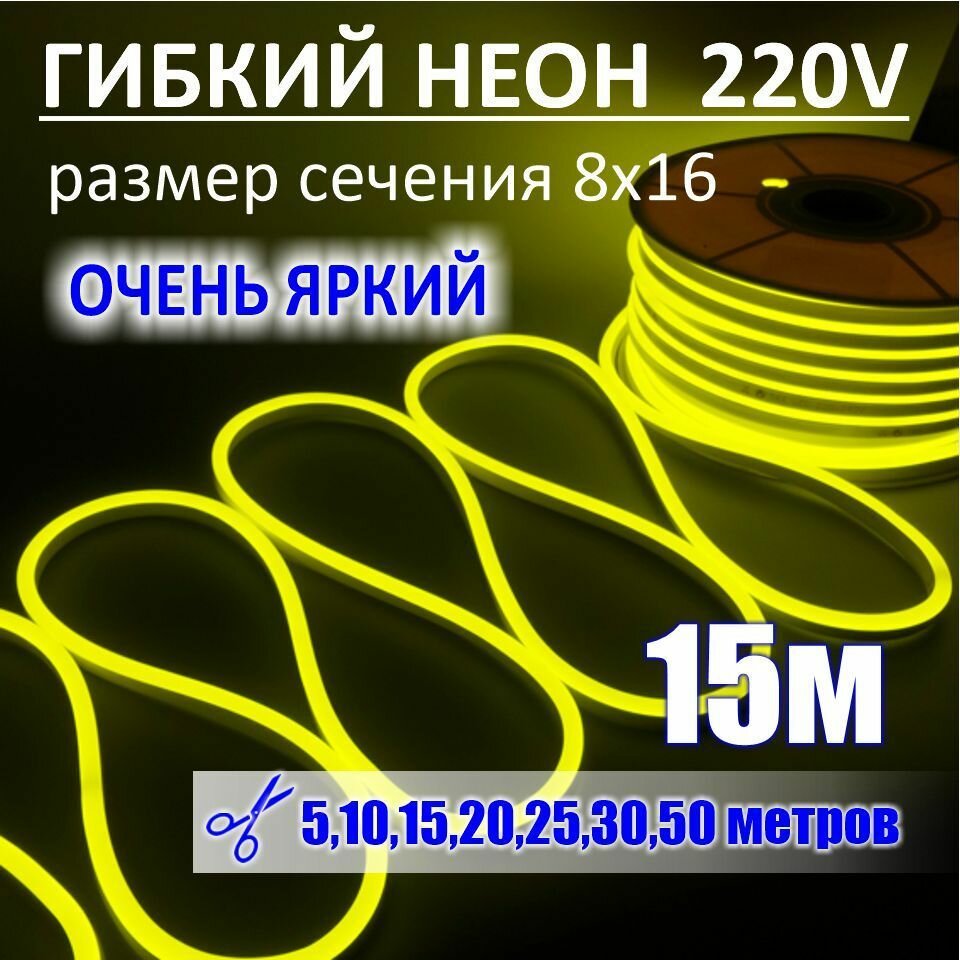 Купить Гибкий неон 220в, LUX 8х16, 144 Led/m,11W/m, лимонный, 15 метров