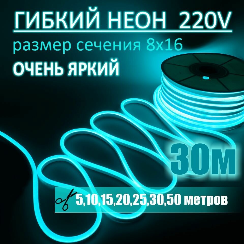 Купить Гибкий неон 220в, LUX 8х16, 144 Led/m,11W/m, бирюзовый, 30 метров